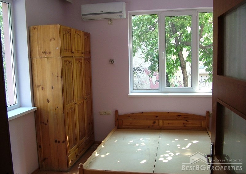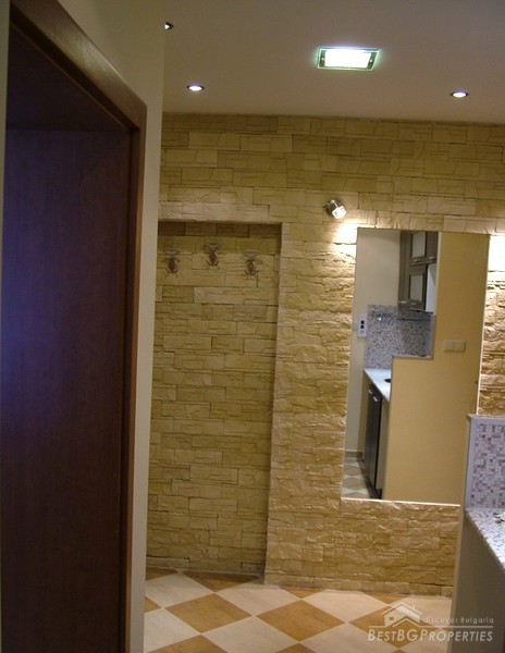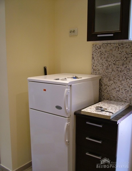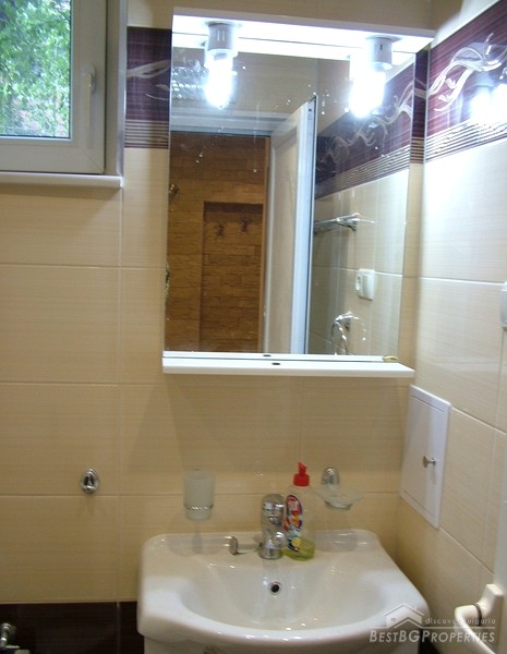 The apartment has total living area of 50 sq m, after a complete, luxury renovation. It consists of a living room with kitchen box, one bedroom and a bathroom with WC. The apartment benefits with three-layered glazing and six-chamber PVC windows. There is laminate flooring in the living room and bedroom, terracotta in the bathroom and kitchen. The heating is via two air conditioners. The apartment is fully furnished and equipped with electrical appliances. There is a large basement of 15.4 sq m under the apartment. It is suitable to be used as a workshop or storage. Outside there is a space for parking.