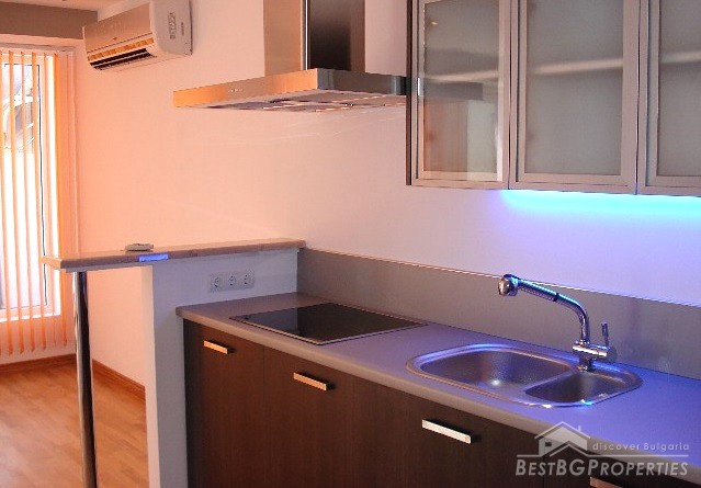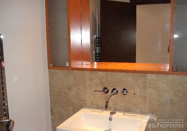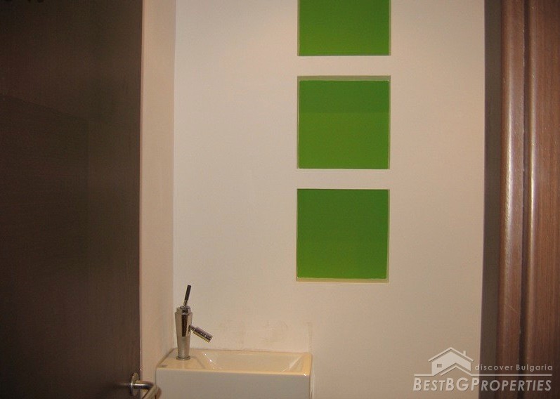 The price includes furniture and equipment. There is a designer kitchen with brand new electrical appliances, air conditioning, etc. The apartment has never been used and lived in. The stage of completion is turnkey – natural parquet and granite floors, latex paint, PVC window joineries. There is video intercom, fully equipped bathroom with shower cabin.