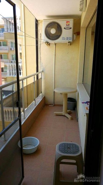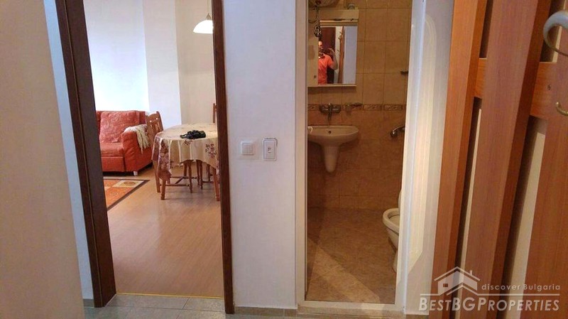 This is a lovely apartment located in the small sea resort of Pomorie. The apartment has total living area of 55 sq m. It is on the second floor out of five in the building. The building is new construction, finished in 2008.