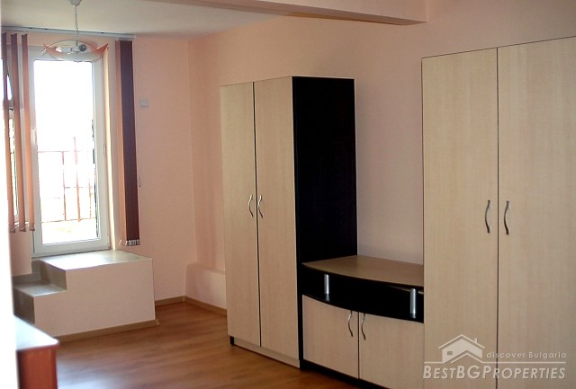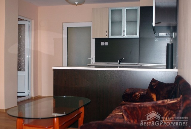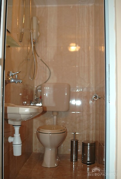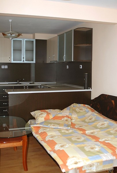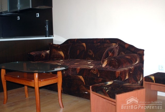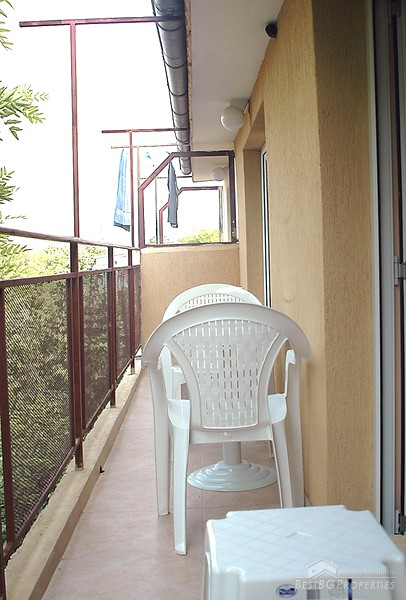 The apartment which is for sale is one-bedroom type and comprises total living area of 49 sq m. It is part of a brick built building situated on the central street in the resort - close to all amenities and with all communications available. The apartment is after a complete renovation. It is for sale fully furnished with new furniture and equipment included. The apartment consists of a living room with kitchen box, one bedroom, bathroom with WC, and a balcony with nice view. There is internet connection and cable television. The annual maintenance fee is 15 euro.
