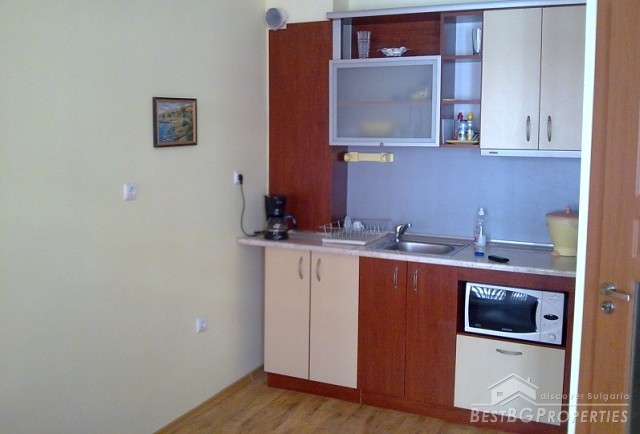 It is a perfect fully finished and furnished apartment for sale located in a new residential building with act 16 permission for usage. It is situated in the central part of the town, next to the balneological recreation facility and also in proximity to the beach. The apartment is on the fifth floor of the building and comprises total living area of 57 sq m. It suits perfectly as for permanent residence as for vacation. It consists of a living room with kitchen box, one bedroom, bathroom with WC, balcony, and a corridor. The apartment is ready to move in.