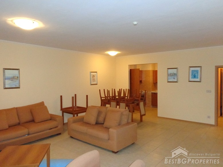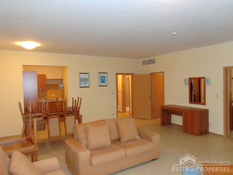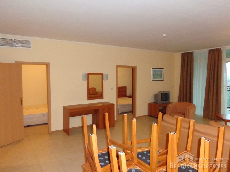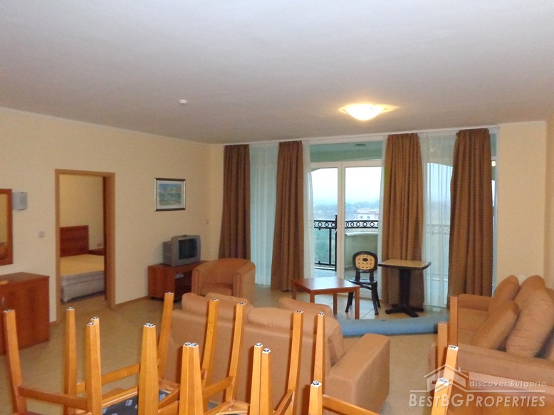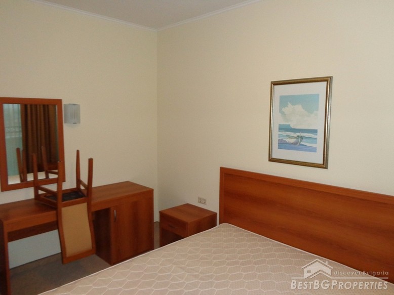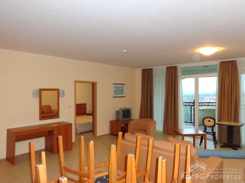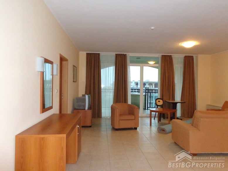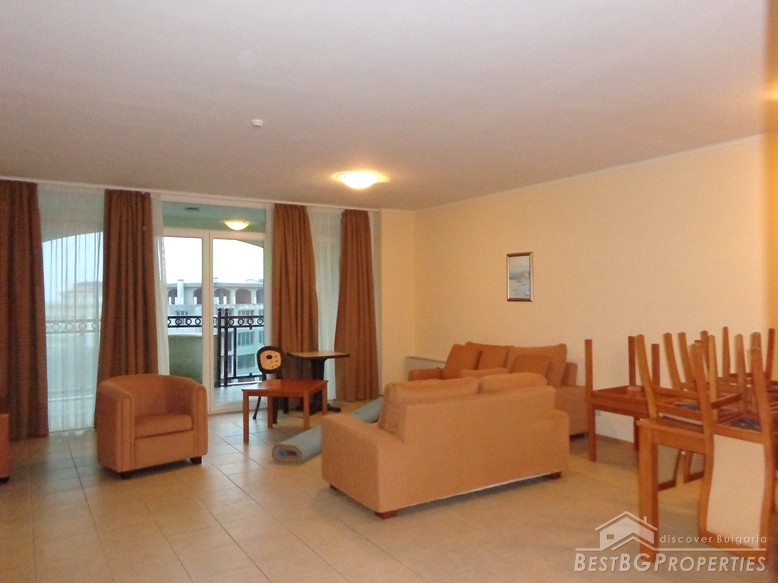 We are offering for sale a spacious two-bedroom apartment in a fabulous apartment hotel with 5 stars on the first line on the southern beach of Pomorie.