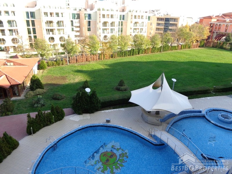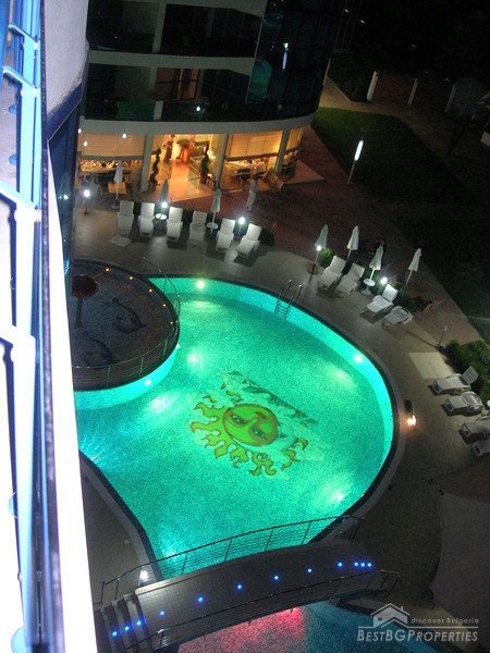 The complex has its own pool with children section, restaurant, pub, lobby bar, cocktail bar, pool bar, GYM, SPA centre, beauty saloon, medical and business centre, mini golf, shops and parking lot.