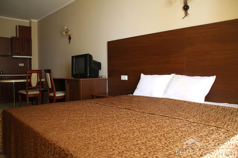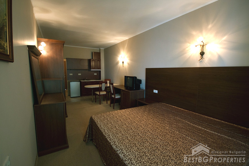 The complex is located along one of the most beautiful beaches on the Bulgarian Black Sea coast. The complex has a few shops, a well-equipped fitness center, and a unique spa.