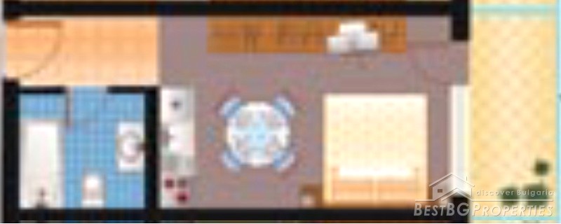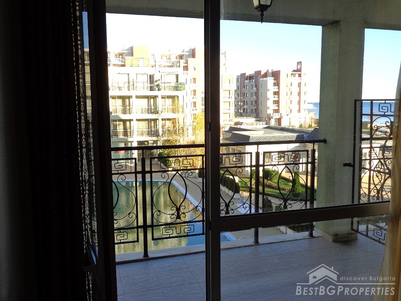 The studio has sea views and is set on the 3rd floor. It is fully furnished and equipped. The total area is 44.5 sq m. The studio is fully finished and furnished "on key" with luxury furniture. It has a fully equipped kitchenette, bathroom with toilet. The studio is suitable for year-round use.