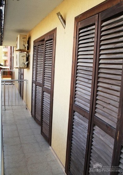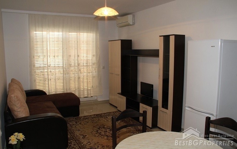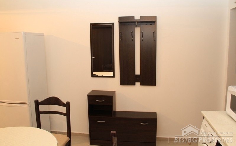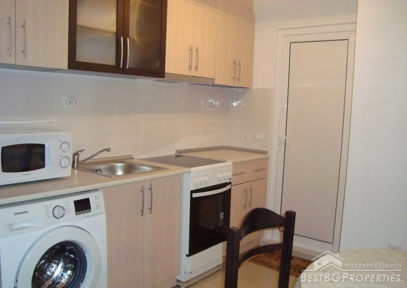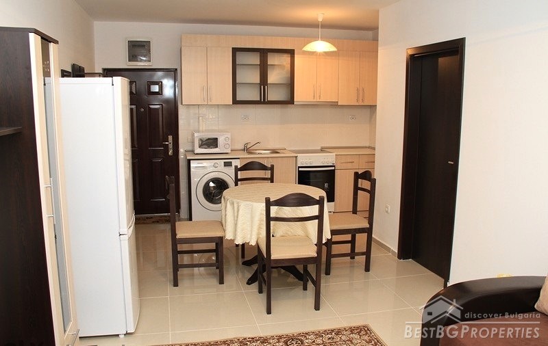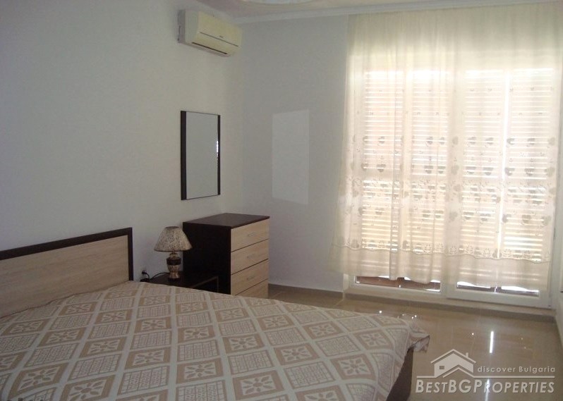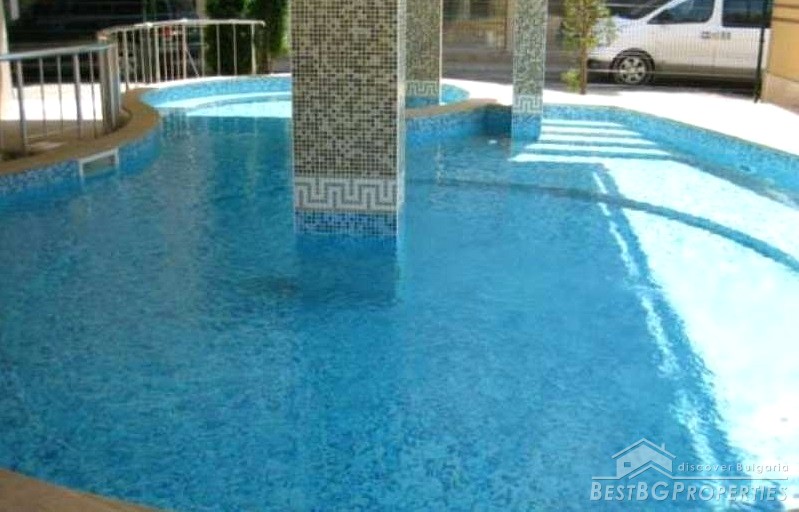 The apartment has total living area of 58.71 sq m. It is on the first (high) floor. The price includes full furniture and equipment including 2 air conditioners and kitchen appliances. The building has a pool! Minimum maintenance fee!