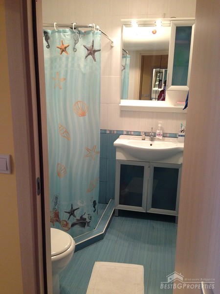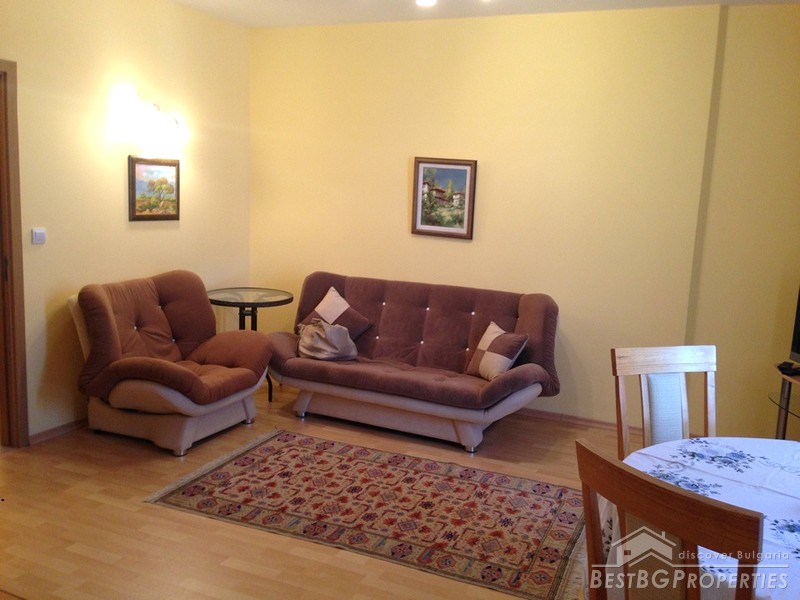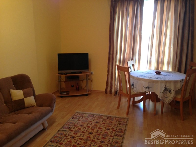 The offered apartment is one bedroom type and comprises with total living area of 50 sq m. It consists of a living room with kitchen box, one bedroom, bathroom with WC, and a balcony with nice view. It is situated on the second floor of the building. The apartment comes fully furnished and equipped with all electrical appliances - conditioner MITSUBISHI, washing machine and fridge BEKO, boiler.