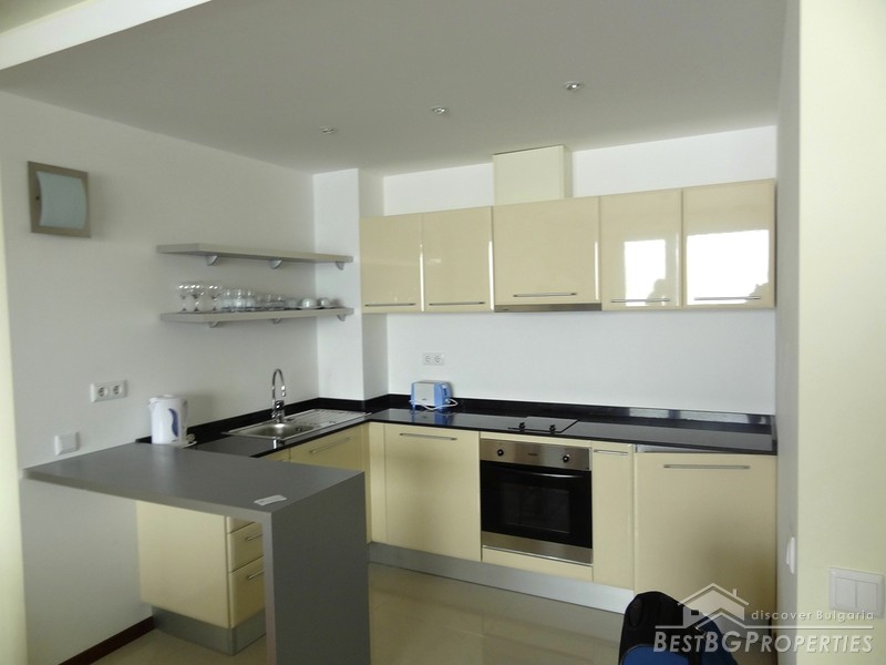 The apartment consists of two bedrooms, living room with kitchen box, bathroom with WC and a balcony. The price also includes an underground garage! The apartment is completely finished and furnished with stylish brand new furniture. The finishing is according to the latest European requirements there are all necessary conditions for permanent living.