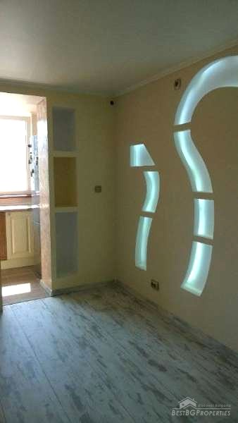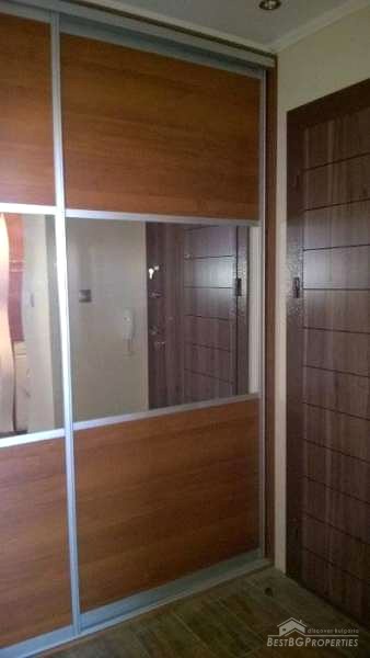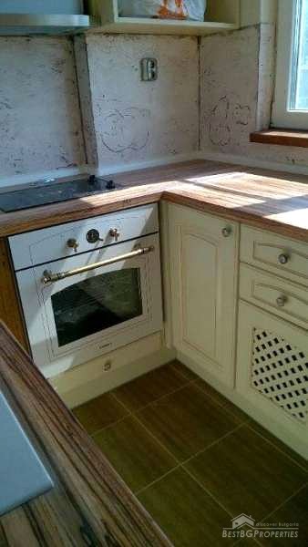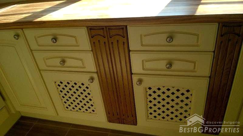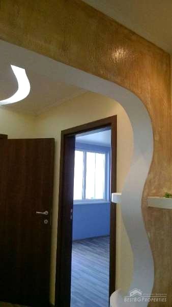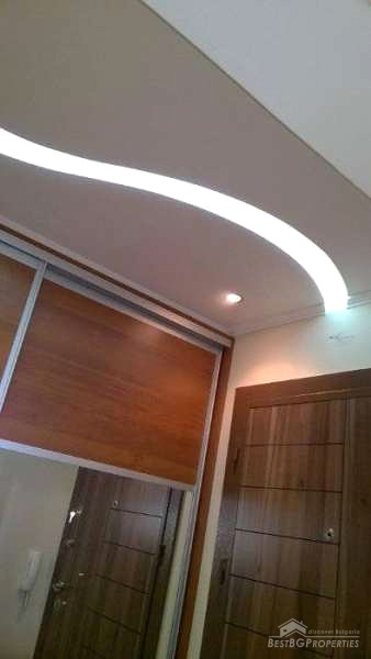 The apartment consist of a large living room with kitchen, two bedrooms, bathroom and a laundry room. It is luxury finished. The apartment benefits with 6-chamber PVC windows with triple K glazing, German laminate, Italian terracotta and quality latex paint. The price includes unique kitchen fittings made in Turkey, integrated LED lighting, amazing decorative plaster, interior magnetic doors, armored front door, custom bedroom with new mattress worth 1200 lev, new refrigerator and washing machine, retro oven, ceramic hob, Italian hood and much more.