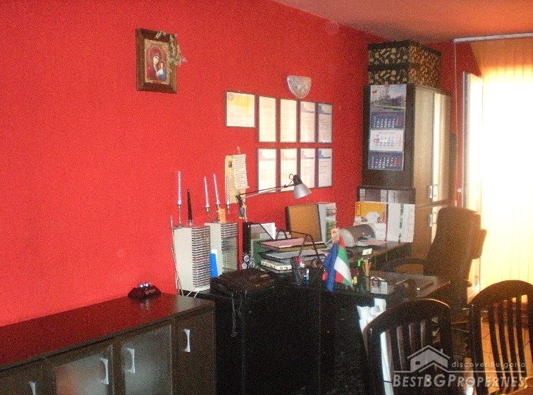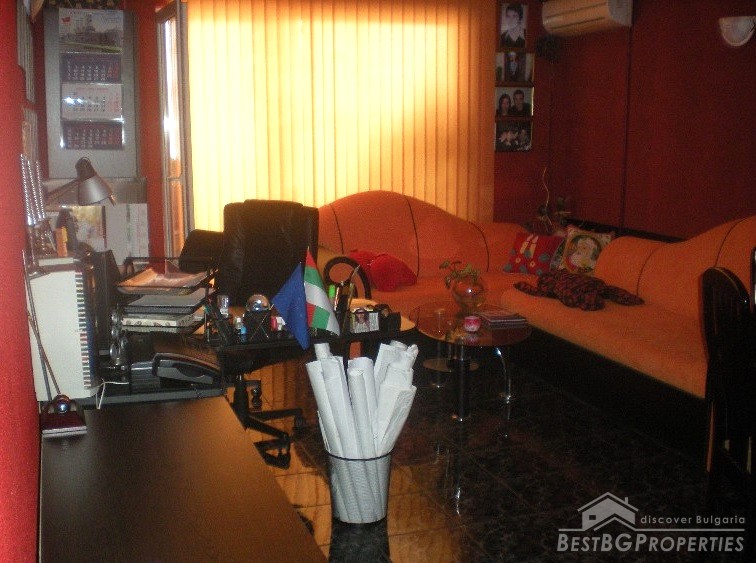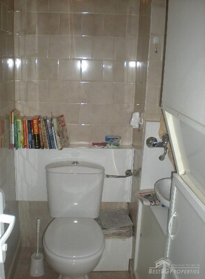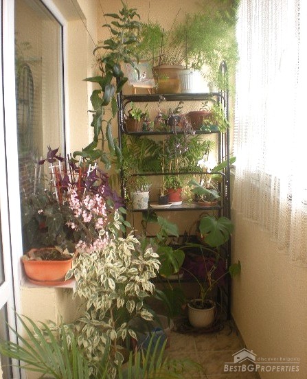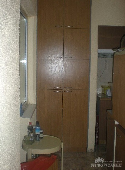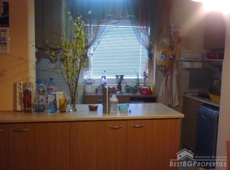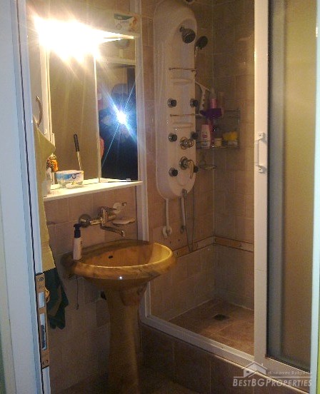The apartment is renovated and has new tiles, wall and ceiling plaster, and aluminum doors in all rooms, PVC windows on all windows, one balcony with aluminum windows and new tiles and another which is the built - in kitchen. There is a WC with new sink, toilet and bidet, bathroom with shower and massage shower, two Japanese air conditioners. In the living room there is a built in bar and office table. The price of the apartment includes a large basement and on the floor of the apartment there is an extra service premise.