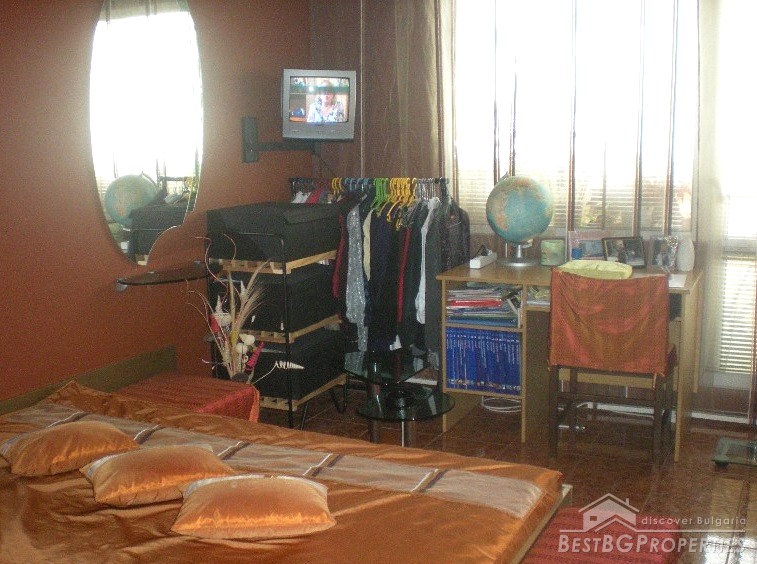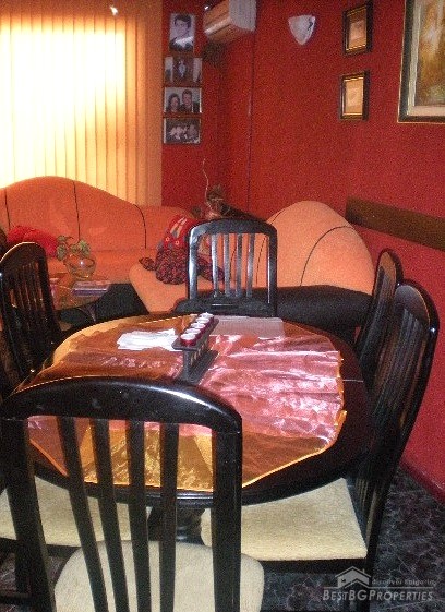 This is a fully furnished apartment for sale, located on the 6th floor of a panel building with elevator in the town of Ruse.