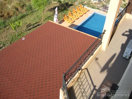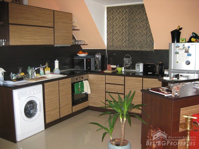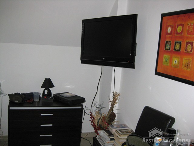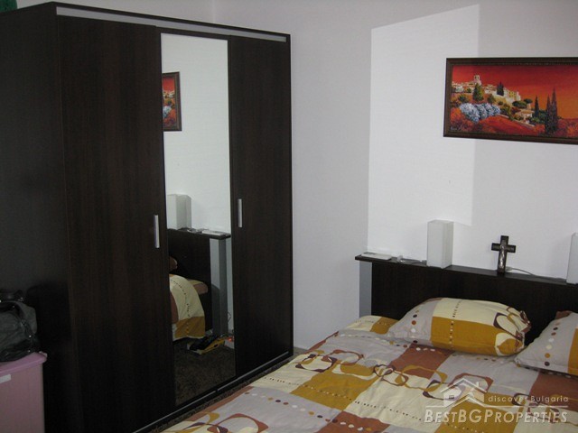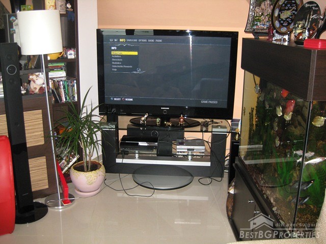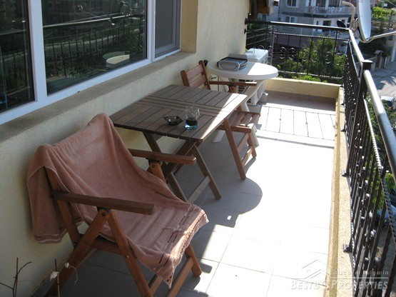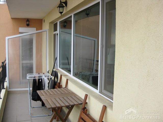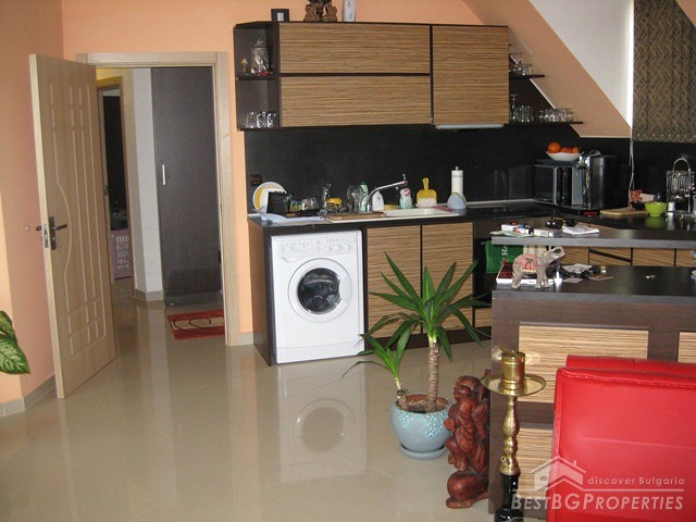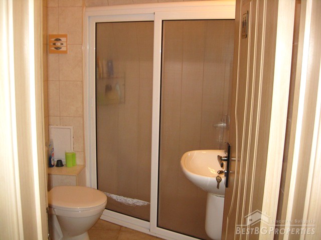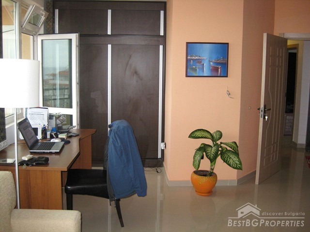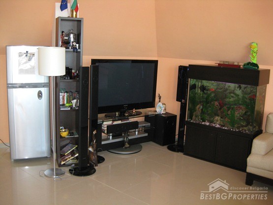 This is a wonderful apartment for sale situated in the charming town and resort of Saint Vlas near the famous Sunny Beach. The apartment is situated in a 4 floored residential building with pool and restaurant. The area is very convenient and strategic. The center of the town is at the distance of only 5 minutes walking from the building, the harbor of Marina Dinevi is only 300 m away. The harbor has a capacity for 250 yachts. There is a nice sandy beach with beach bars, many restaurants with international Bulgarian cuisine, a piano bar, sushi and disco clubs are also going to be at your disposal. The apartment has a total living area of 85 sq m including the common parts. It consists of a corridor, bathroom with WC, big living room and a balcony. From the windows and the balcony opens incredible view towards the sea the resort of Sunny Beach and the historic town of Nessebar. The apartment is fully furnished and equipped. The furnishing is with modern design and high quality. It is also fully air conditioned. There is water, electricity and SOT security system provided in the property. There is good infrastructure in the area with all necessary amenities. There is a medical office just near the building, operating all year around, also shops, cafes and many other. This property offers luxury comfortable environment in combination with calm and safety for the owners.