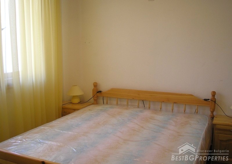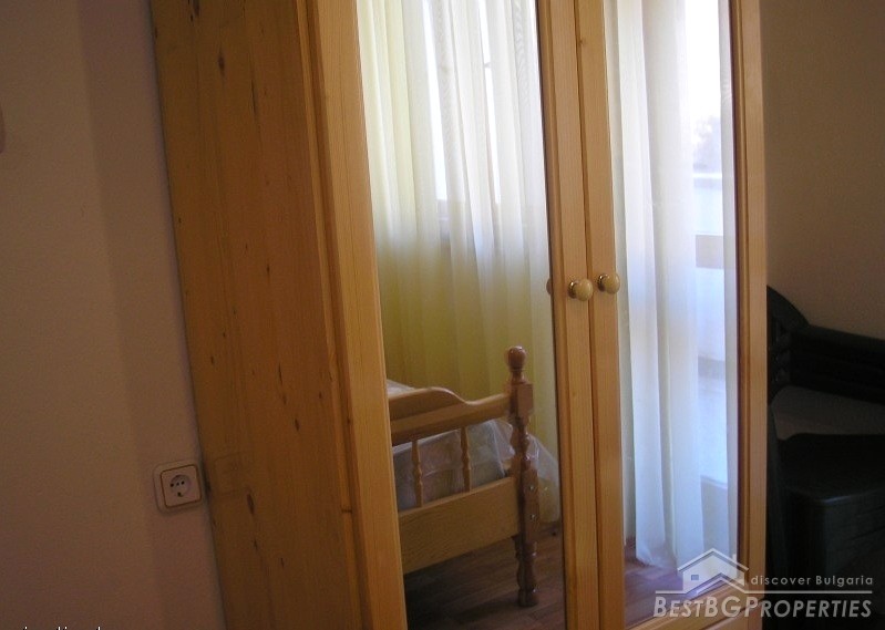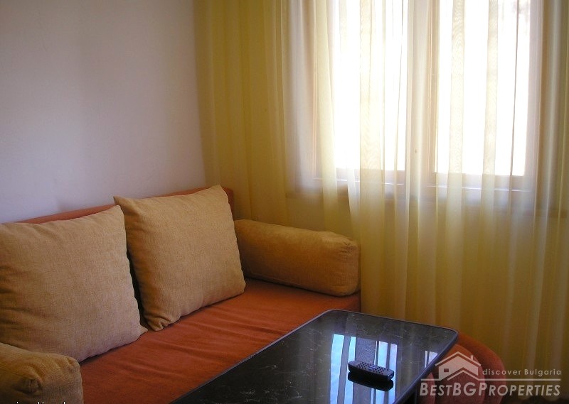 The apartment is one bedroom type and has total living area of 40 sq m. The apartment consists of a living room with kitchen area, one bedroom, a corridor, bathroom, WC - separate, large balcony. The apartment is finished according to the highest standards of construction. During the construction have been used best quality materials. The finishing is with laminate floorings, terracotta and faience in the bathroom and WC, the walls and ceilings are painted with high quality latex paint. The window joinery is PVC. There is water and electricity provided. The apartment is for sale completely furnished and equipped with everything necessary.