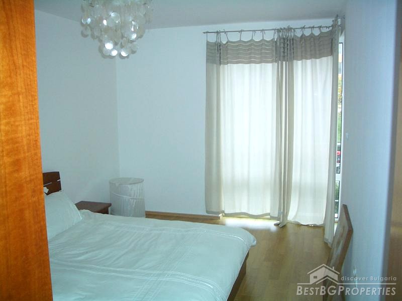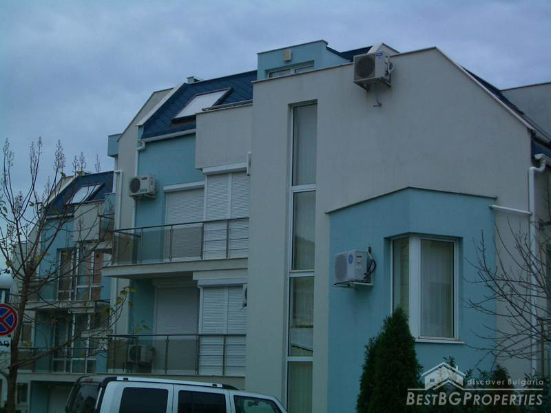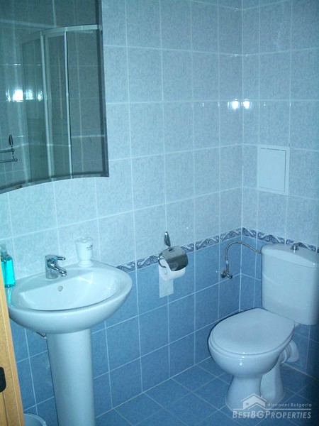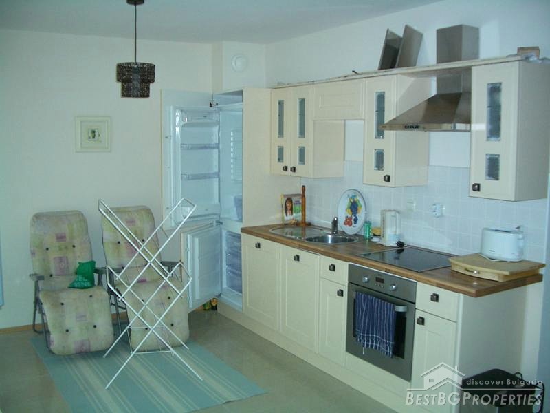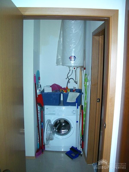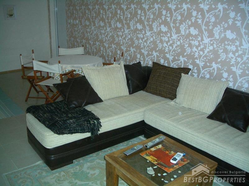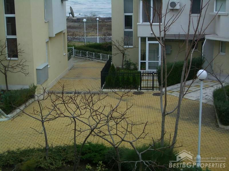 The apartment which is for sale is very large and spacious. It comprises total living area of whole 87 sq m. The apartment is a two bedroom type and consists of a living room with kitchen box, two balconies with awesome view over the sea, bathroom with WC and two bedrooms. The property is set on the second floor of a new closed type apartment complex in proximity to the sea shore. The building is located just some 20 meters from the beach. The maintenance tax in the complex is 500 euro annually. The apartment is for sale fully finished and finished with high quality equipment and furniture. There are all communications provided including water and electricity.