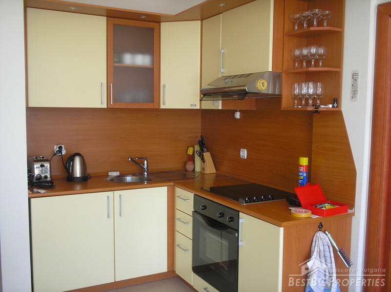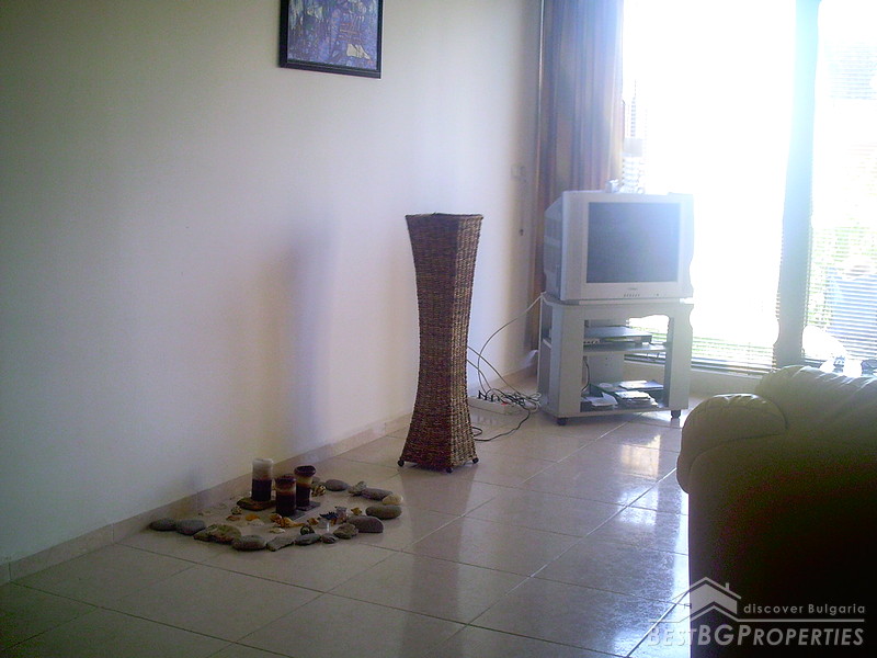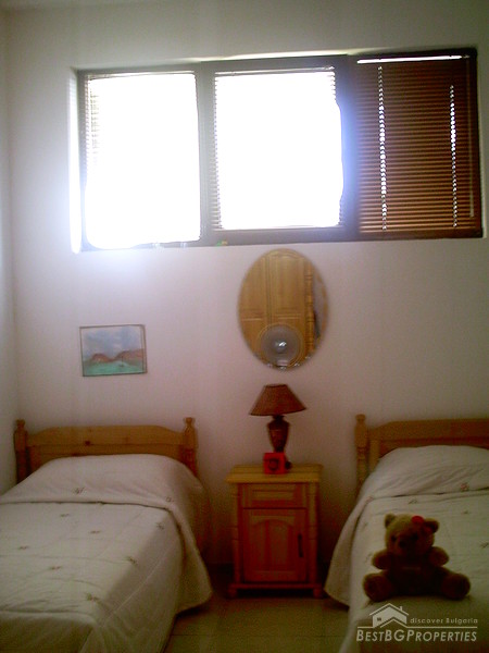 The apartment is two-bedroom type, comprising total living area of 92.5 sq m. It consists of a living room with kitchen box, two bedrooms, and a bathroom with WC. It is equipped with air conditioner, cable TV. It has fully fitted and equipped kitchen with washing machine and everything necessary. It is fully furnished to a very high standard and very well maintained. Also this is the only apartment in the complex which has extra high ceilings. It has been painted every year in order to keep it fresh.