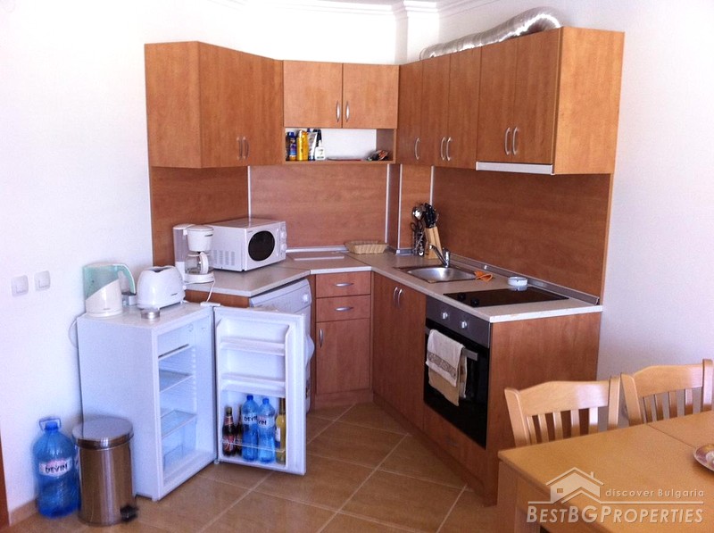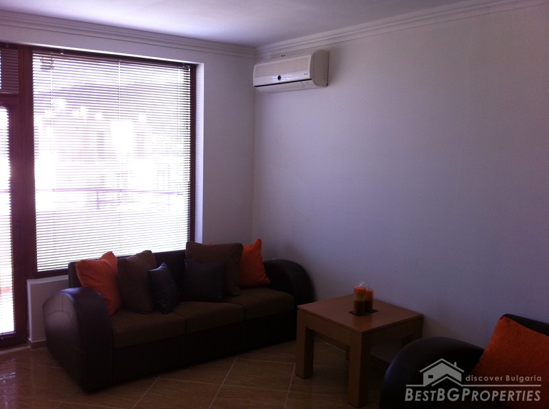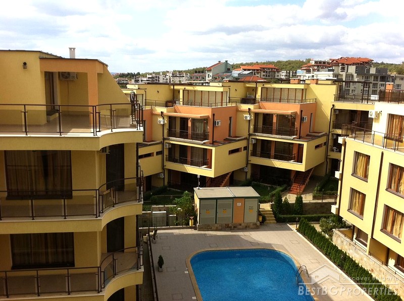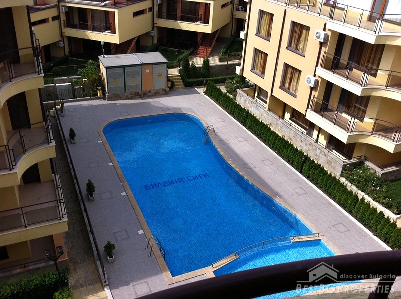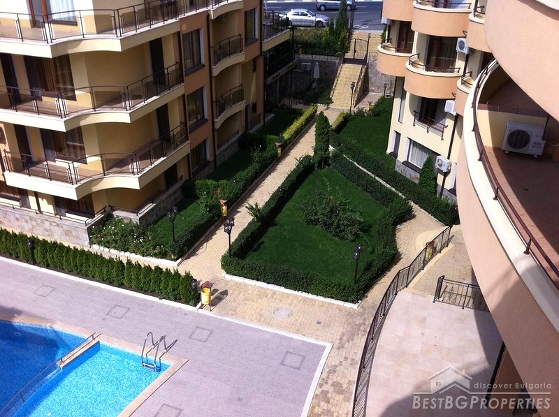 The apartment is one bedroom type and comprises total living area of 68 sq m. It is situated on the fourth floor of a luxurious complex in the bay, stretching from cape Emine to sand dunes, between Sunny beach resort and Sveti Vlas. The unique location between forest and sea offers calmness, clean and fresh air and amazing views.