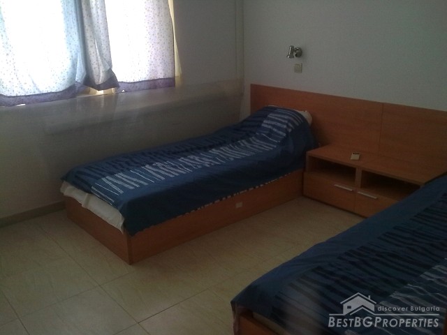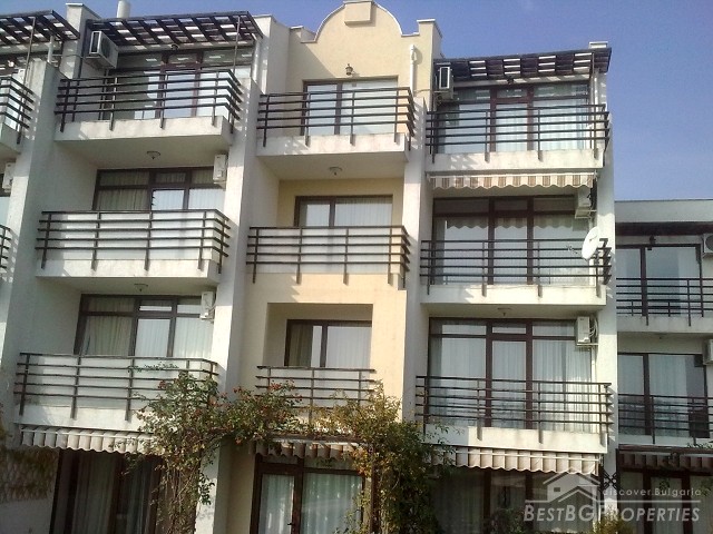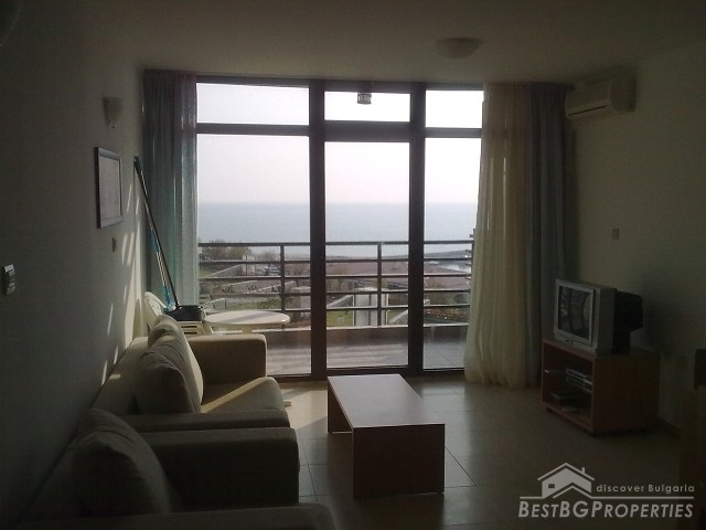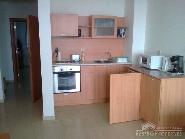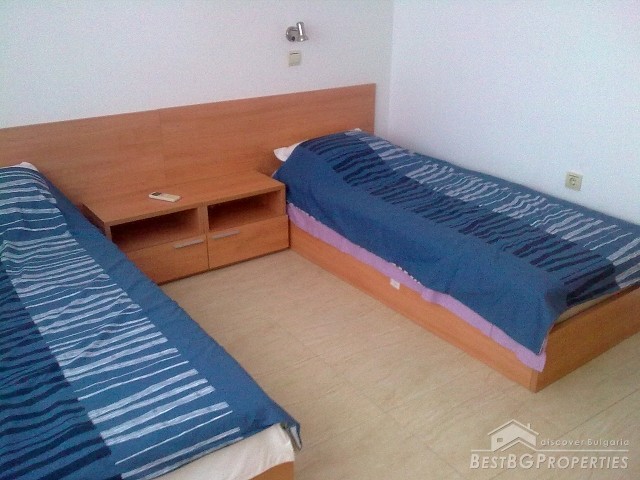 We are offering you this spacious two-bedroom apartment for sale located on the fourth floor of a luxury residential complex in Saint Vlas. The apartment is fully furnished and ready to move in with total living area of 68 sq m. It is stylishly furnished and equipped with air conditioner in every room. From the apartment opens amazing view over the sea, the bay of Nessebar, and Sunny Beach. The kitchen is also fully fitted and equipped with all electrical appliances (oven, absorber, cooking hob, refrigerator, etc), fully equipped bathroom with WC.