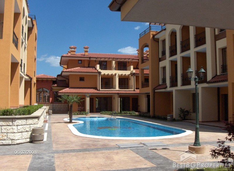 The apartment is located in a residential complex in Sveti Vlas, suited to the highest requirements for comfort and functionality, combined with perfect conditions for relaxation and recreation. The closed type complex is located on an area of 5 000 square meters and consists of six modules. Due to its exterior the complex offers warmth, hospitality, romance and ensures a great holiday at sea.