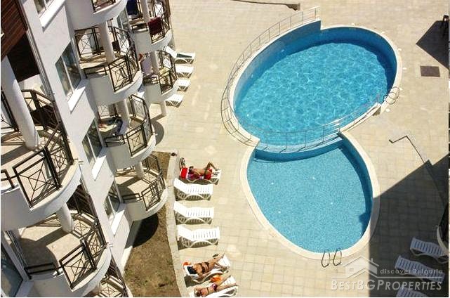 This is an offer for a luxury studio for sale located in a large residential complex in Saint Vlas sea resort around 350 meters from the beach.