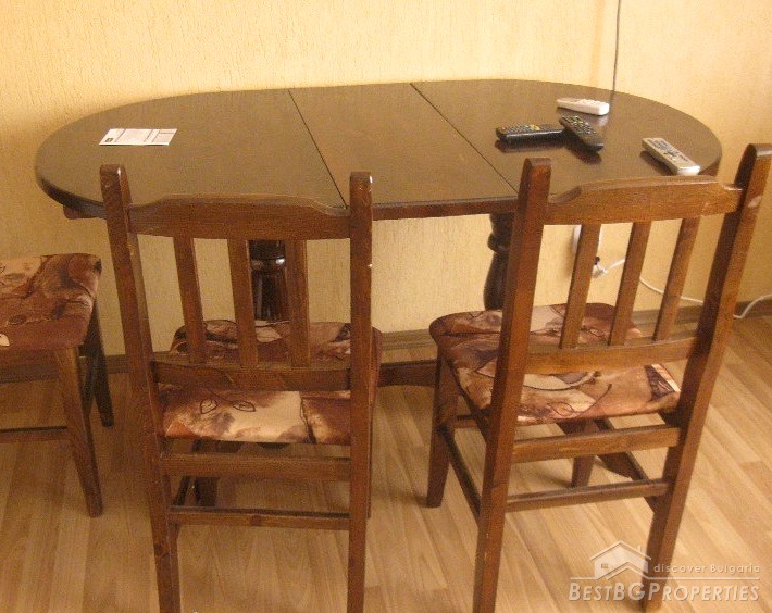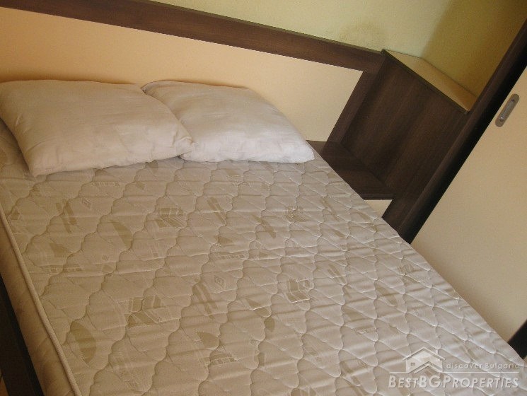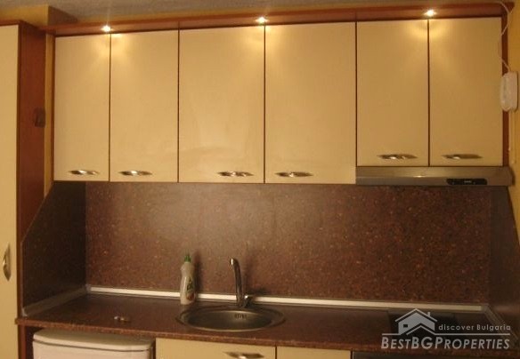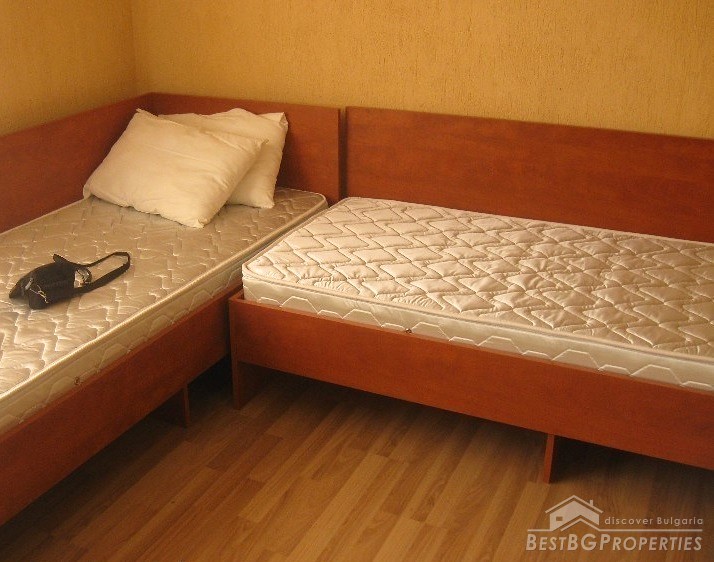 The apartment is a studio type and has total living area of 50 sq m. It is fully furnished and equipped – two corner beds and one bedroom, air conditioner, fridge, cooker, washing machine, etc. It is ready to move in as you can see from the photos.