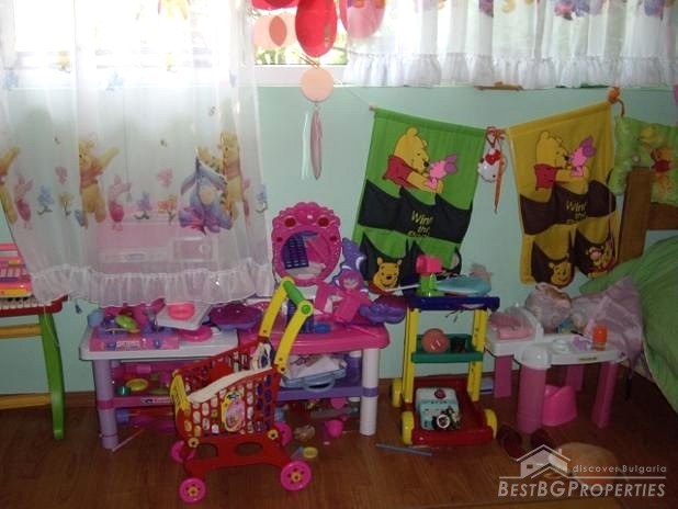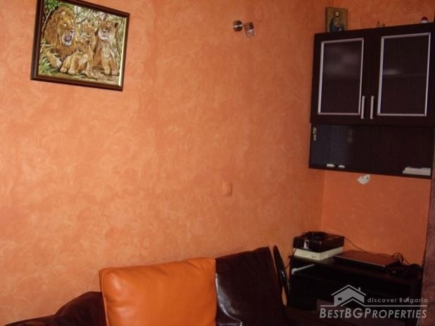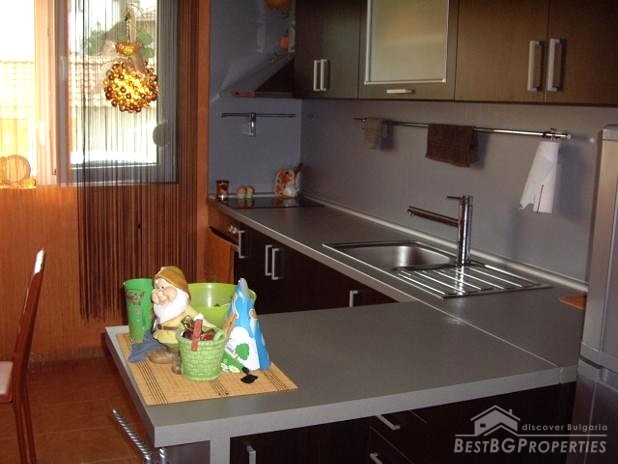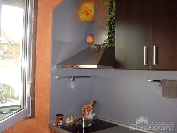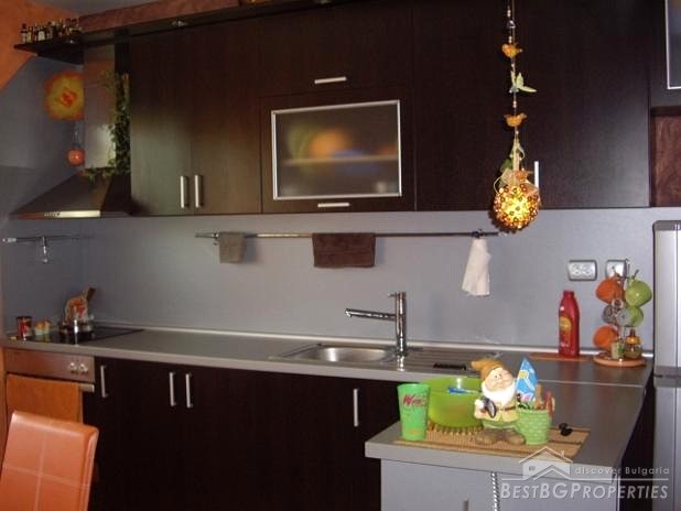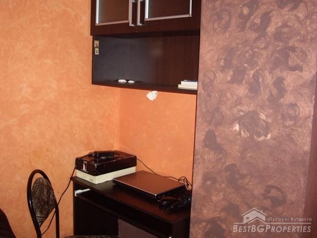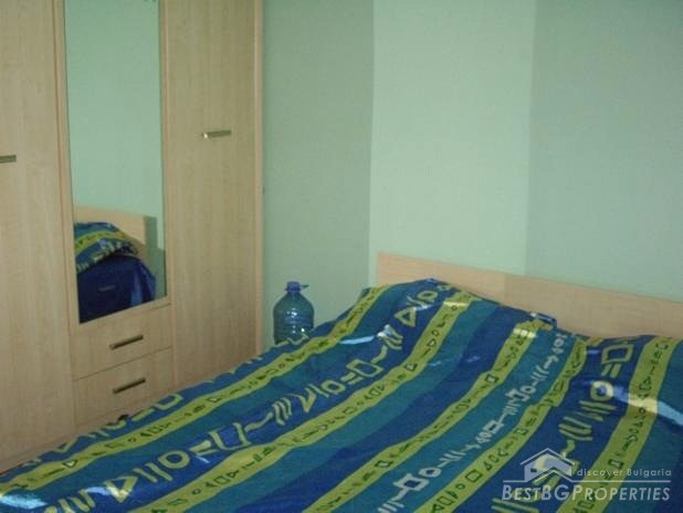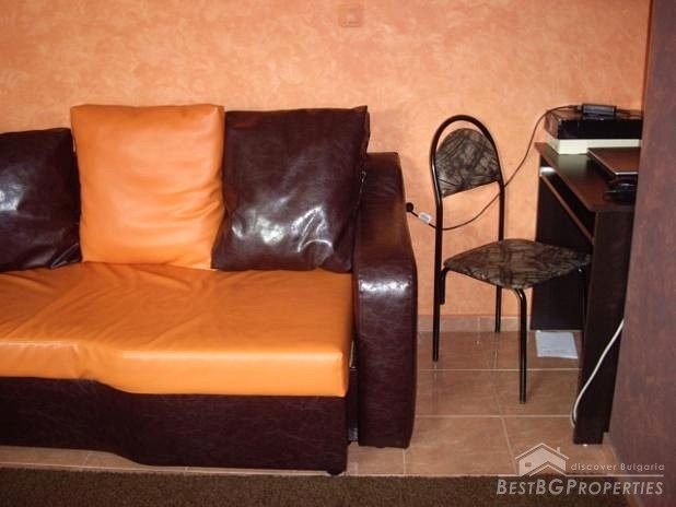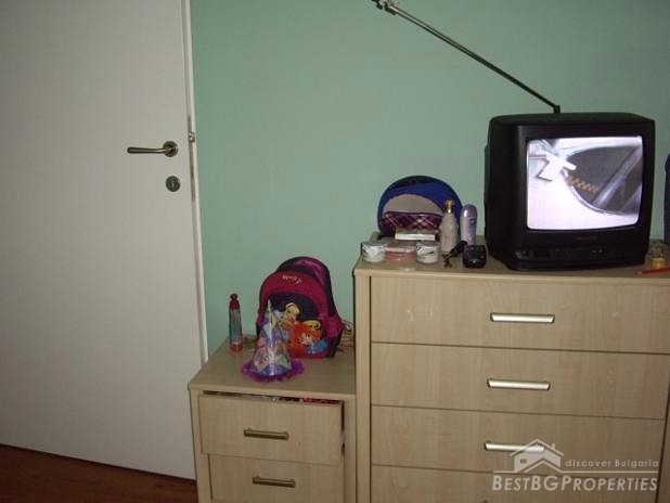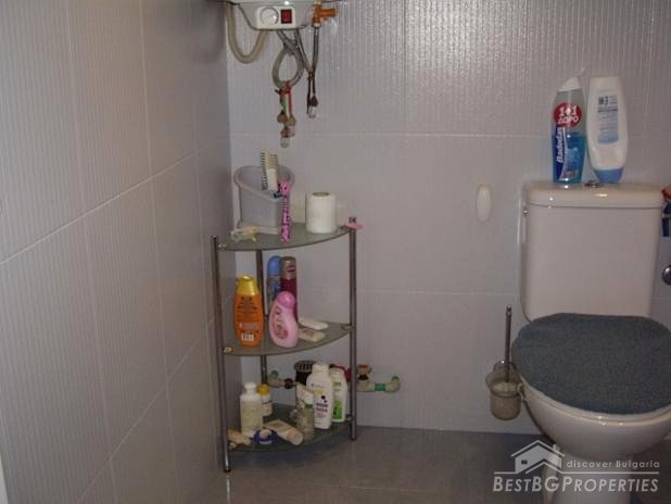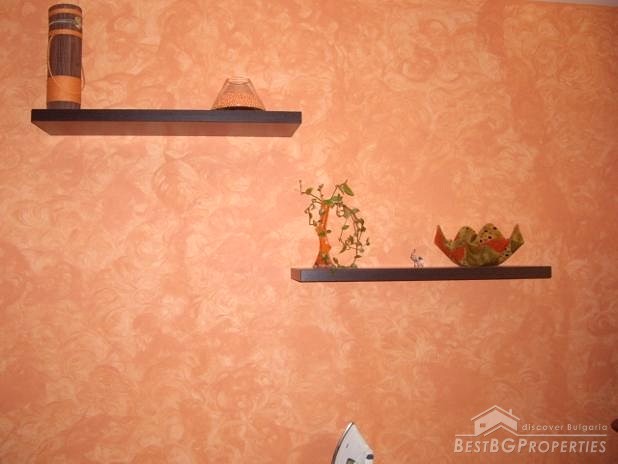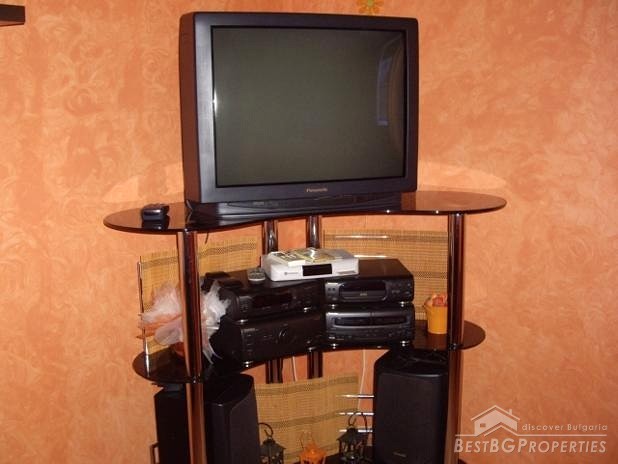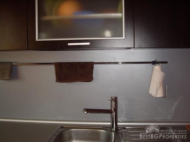 The apartment is luxuriously furnished with kitchen with fitted oven and ceramic stove, refrigerator, washing machine, absorber, leather sofas, outer, shutters, glass made kitchen table. The hallway is equipped with fitted wardrobes with sliding bedroom doors, bedroom with large wardrobe, drawers, etc. The declared living area is without the common parts. This is a great investment, could be used for personal residence or for long term rent out.