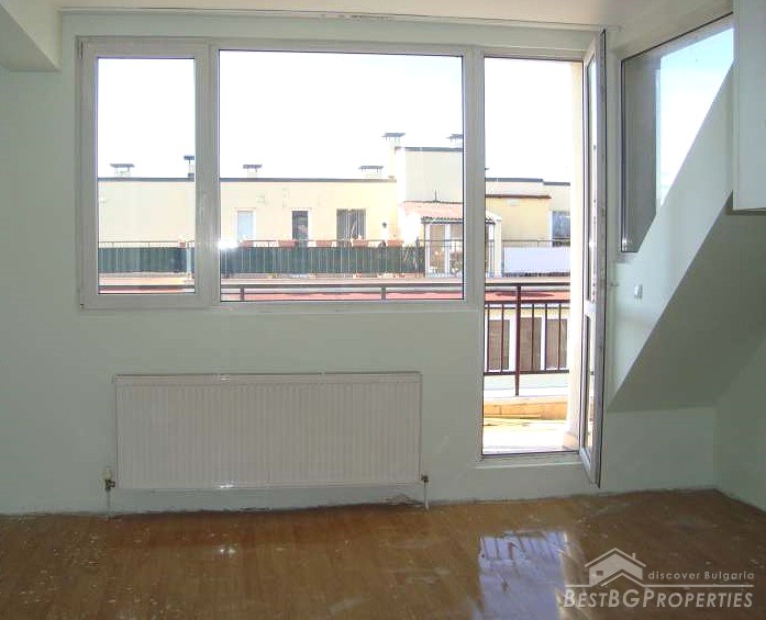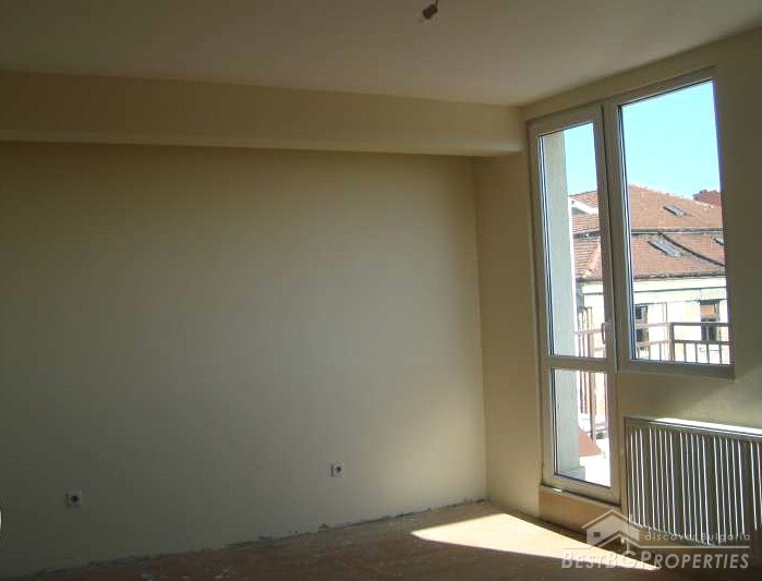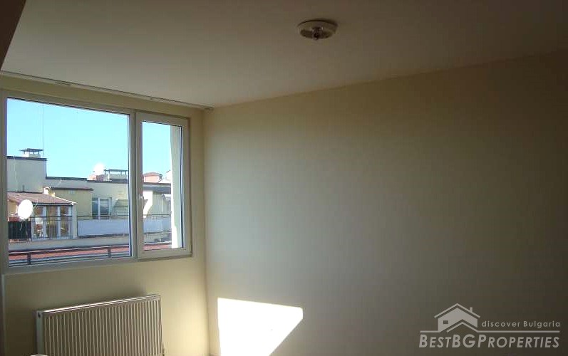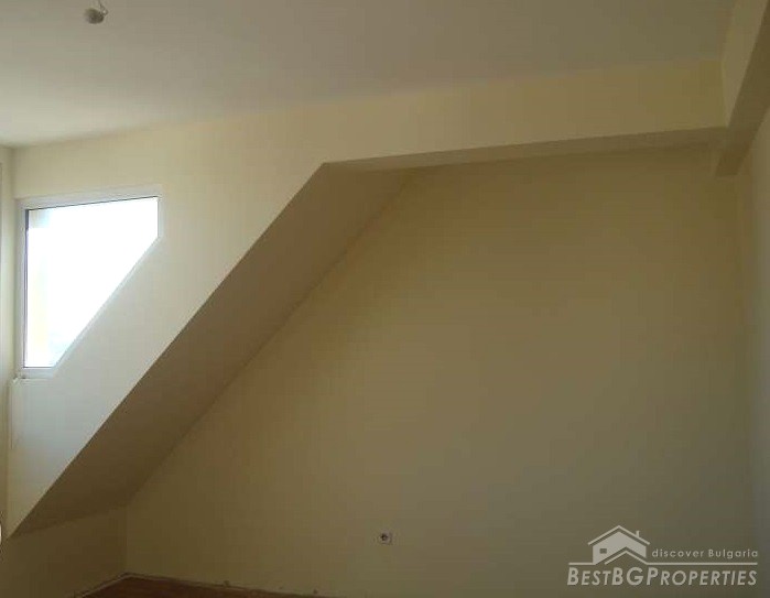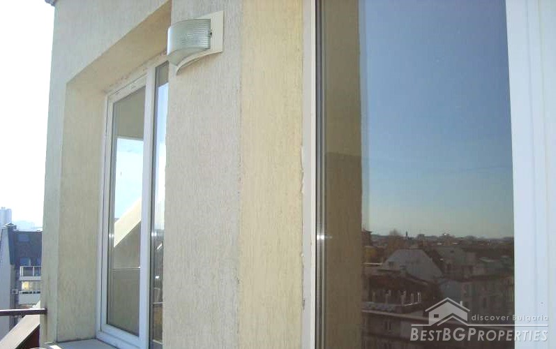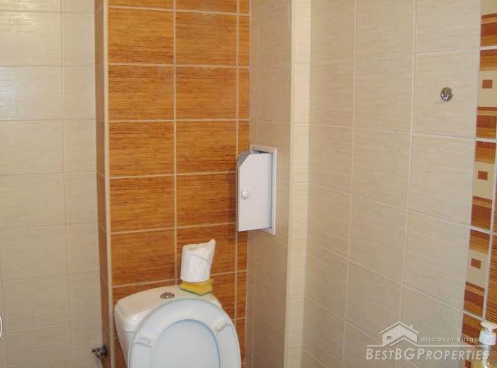 The apartment has total living area of 114 sq m and consists of an entrance hall, kitchen, living and dining area, two bedrooms, bathroom, closet and a balcony in front of each room. The bathroom is fully finished - terracotta and faience. All other rooms have plaster, putty and paint. Terraces are finished with granite. The clean area according to the notary deed is 98 square meters. There is also a basement – 11 sq m.