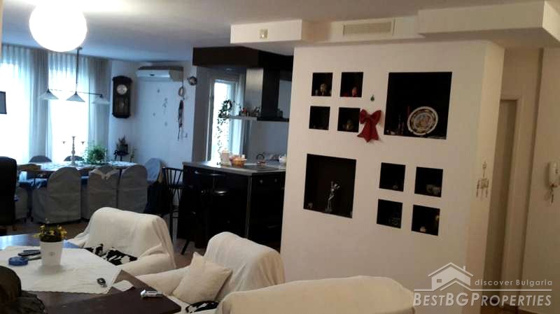 The distribution of the rooms is as follows: spacious living room with dining area and kitchen with a total area of 60 square meters, two bedrooms - 18 and 15 sq. m., bathroom with WC, second guest WC, wardrobe - 4 sq m and three terraces.