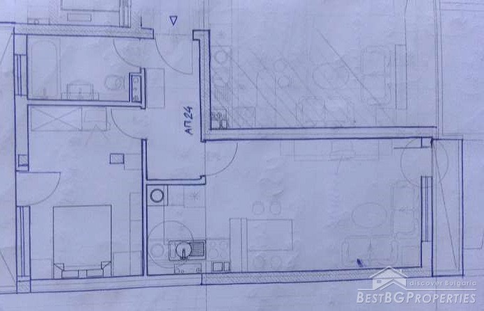 The building is completed and has Act 16 permission for use. The apartment is according the Bulgarian standards – on plastering and putty. The price includes interior doors, PVC windows, etc. Being on the last floor it doesn’t have slopped ceilings.