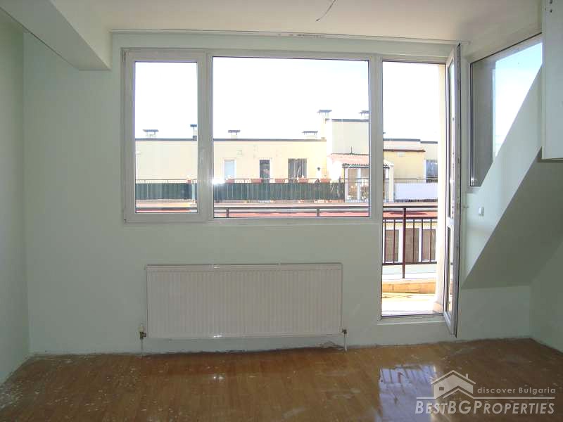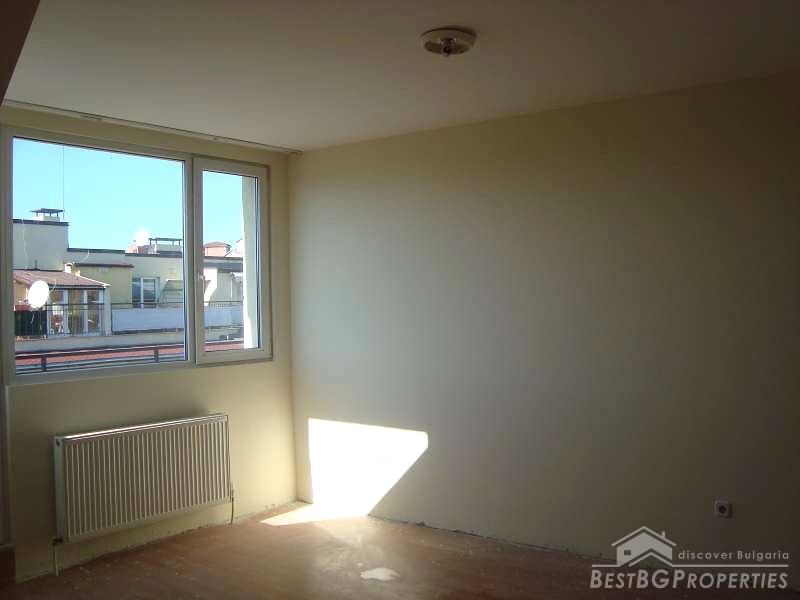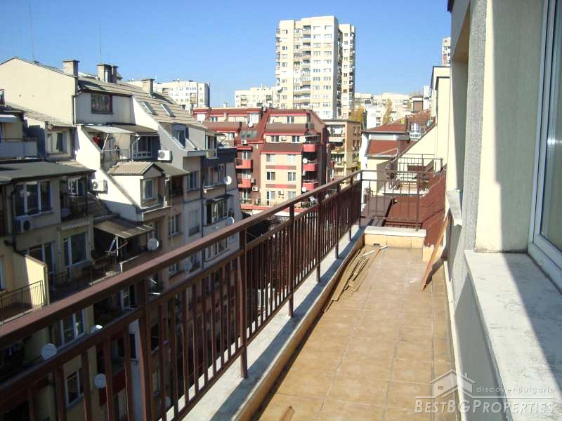 The bathroom is fully finished - terracotta and faience. All rooms are painted. The apartment benefits with large bedrooms – 22 sq m and 20 sq m. The ceilings are slightly slopped, which is not a problem for furniture placement. Terraces are finished with granite. The heating is central. The price also includes a basement – 11 sq m.