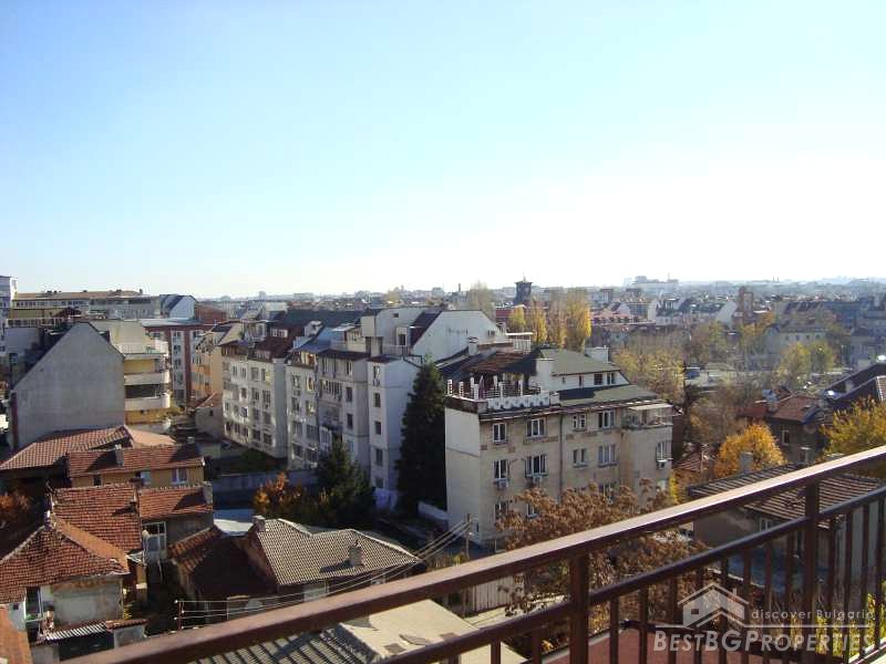 This is a spacious, sunny, two-bedroom apartment for sale, located in the city of Sofia. The apartment has total living area of 114 sq m and consists of an entrance hall, kitchen, living and dining area, two bedrooms, bathroom, closet and balconies to each room.