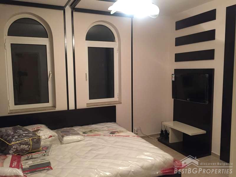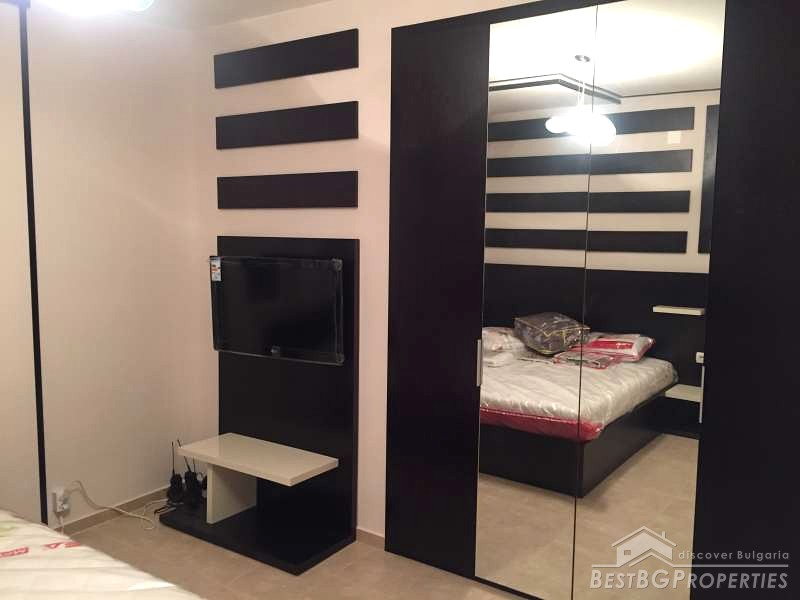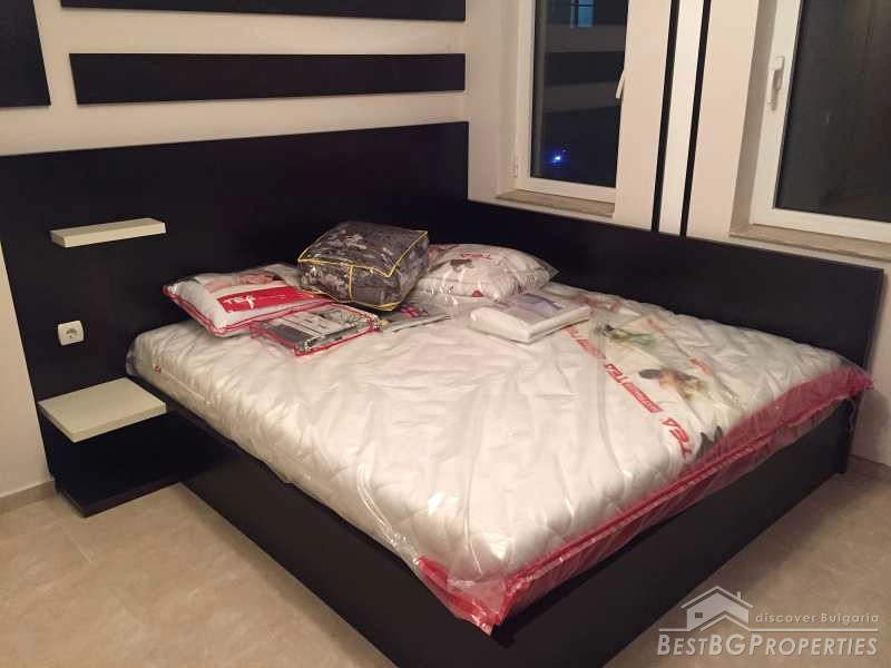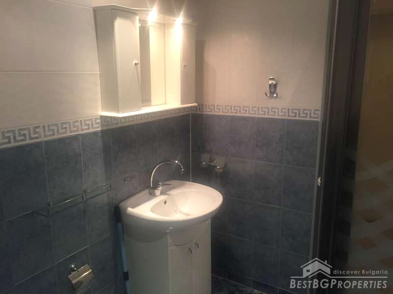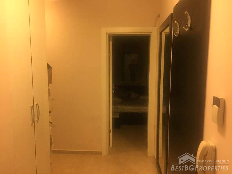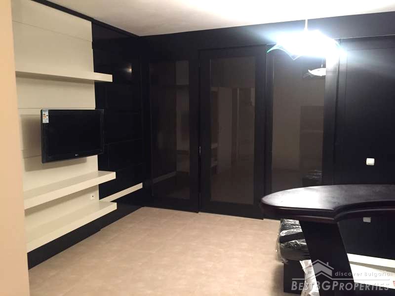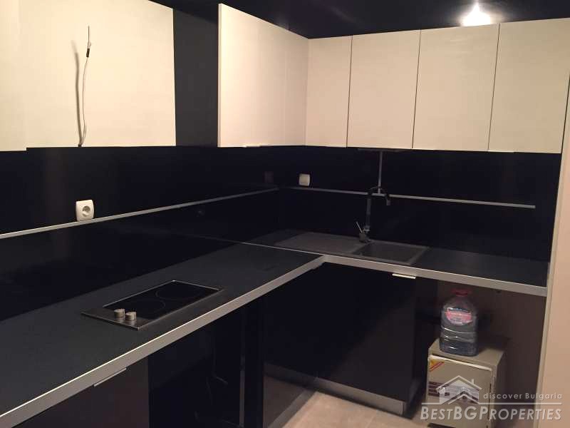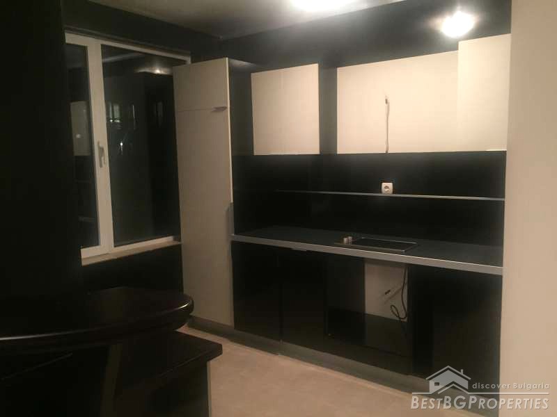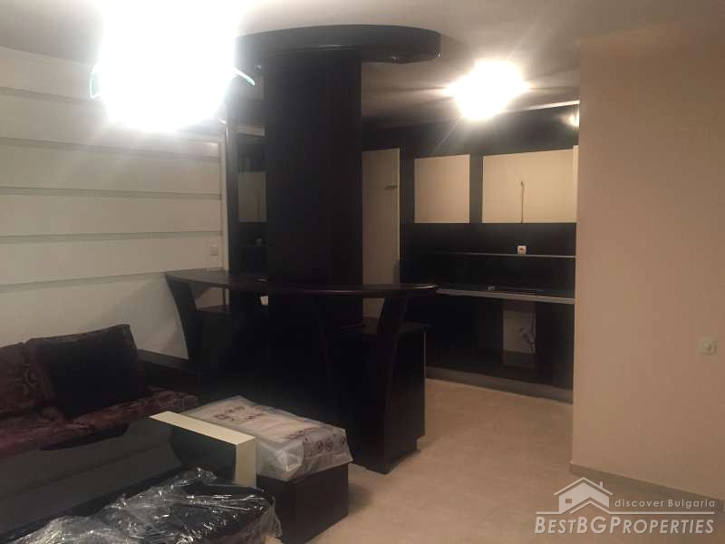 The apartment consists of a living room with kitchenette, one bedroom, bathroom and a terrace. It is with an area 67,17 sq m and also includes a basement of 3,40 sq m and an option to purchase an underground garage. The building is brick built, finished in 2004. The apartment is newly furnished, and has never been lived in. The furniture is modern and luxury.
