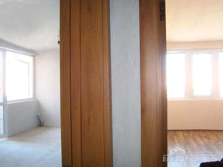 The apartment has total living area of 70 sq m. It consists of an entrance hall, bathroom, large closet, a large living room with kitchen, one bedroom and a terrace. The clean living space is 54 sq m. The exhibition is towards east-west and north. The apartment needs some final finishing and furniture.