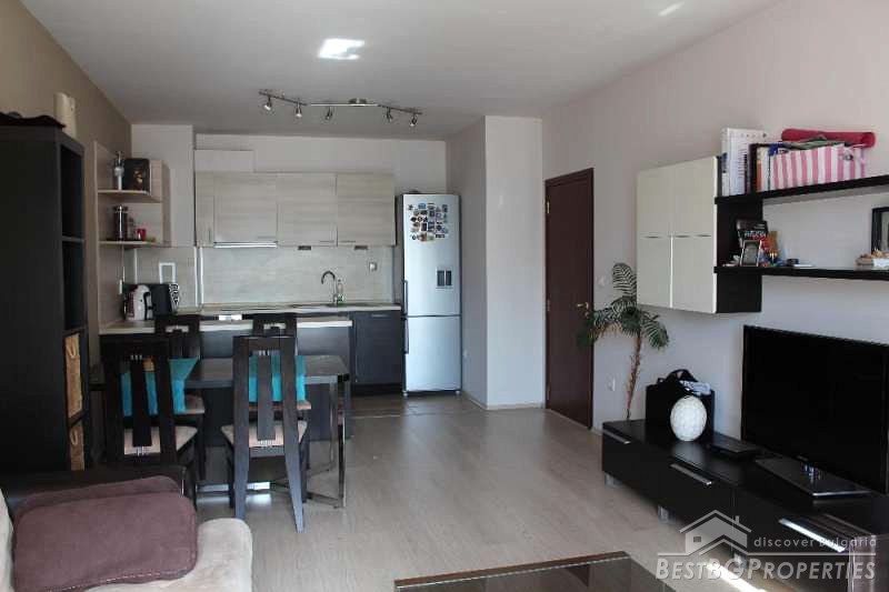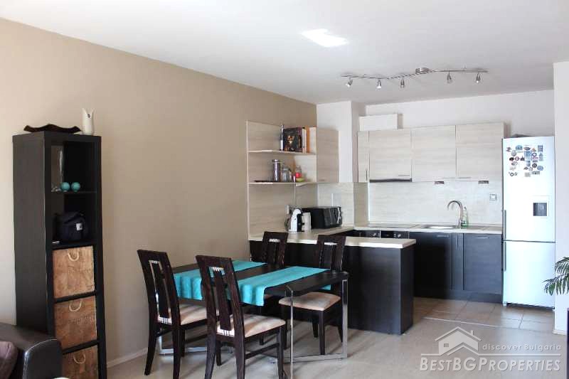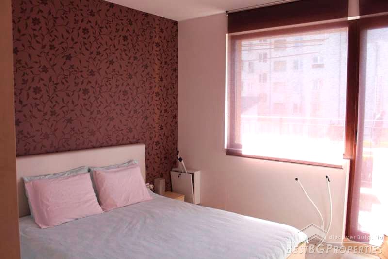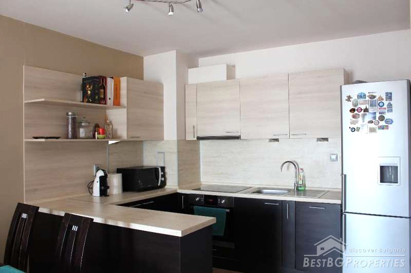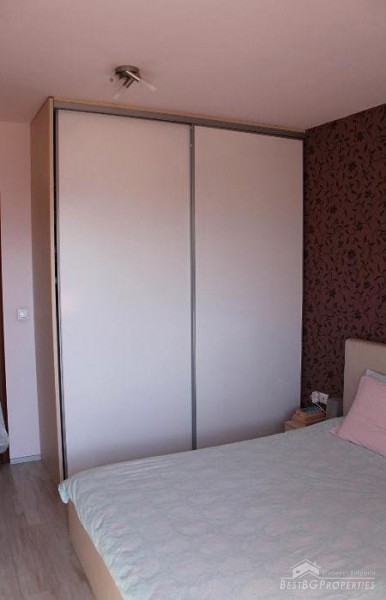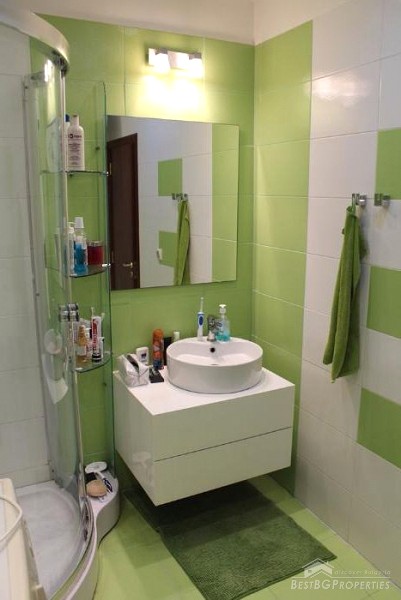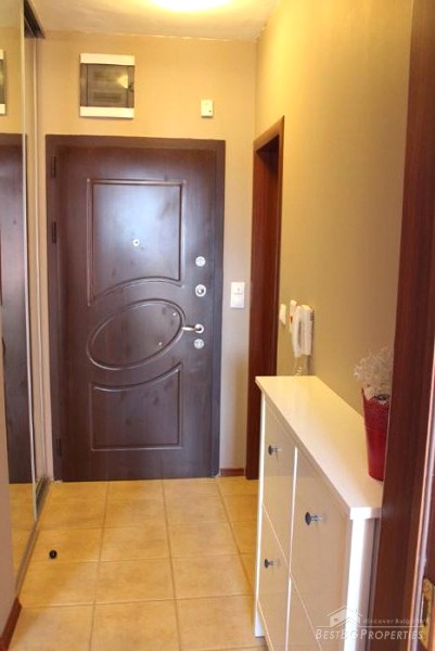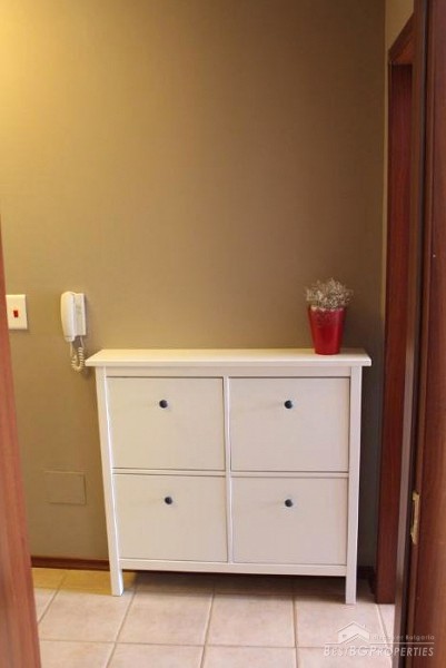 The apartment has built area of 64.53 sq m. The common areas are 11.78 sq m and there is also a basement – 3.72 sq m. It is fully furnished and ready to move in. This is a cozy and welcoming home facing entirely south.