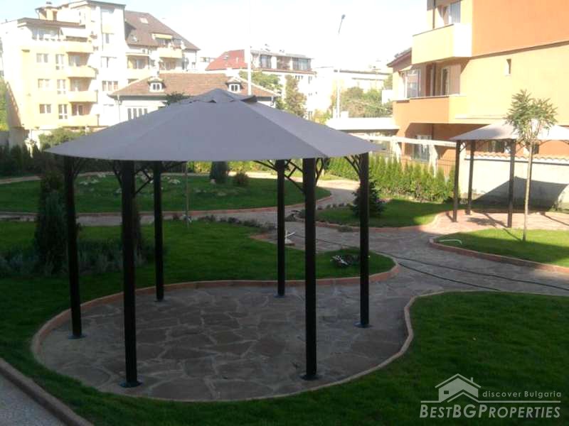 The building is part from a closed type complex with central heating, elevator, 24-hour security, video surveillance, garden with children's sandpit, tents, etc. – all built on a plot with size 1500 sq m. The property has very convenient location - 10 min from the center of the city, near Billa store, a school, the future subway, trolleys and buses.