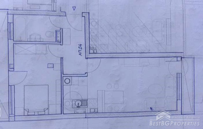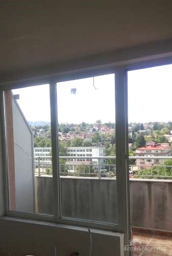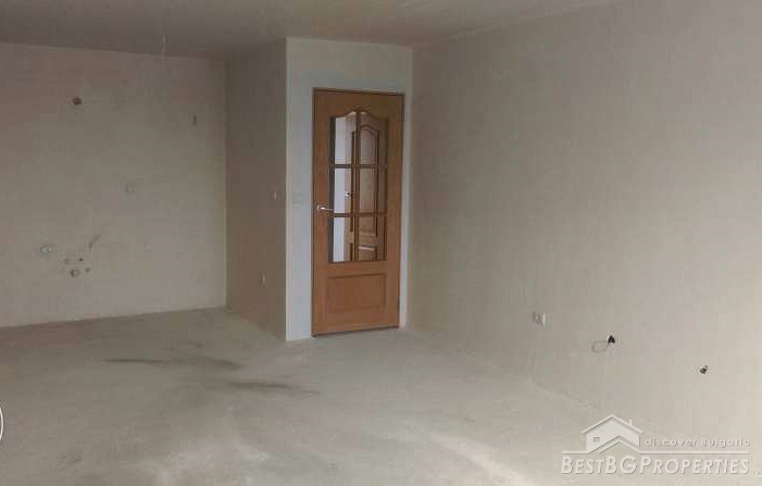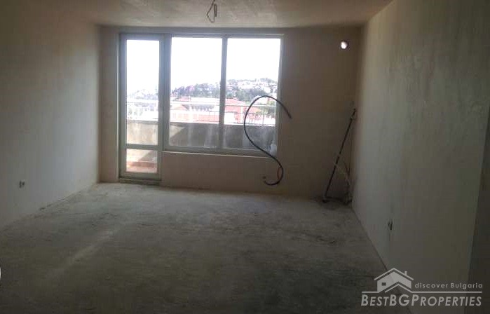 The apartment is on the 8th floor out of 8. It has high ceilings with no slopes and very large premises. The property is finished according the Bulgarian standards – on plastering and putty and needs final finishing. The building was completed in 2015 and has Act 16.