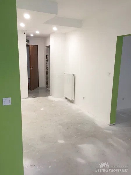 The apartment is completely finished - fine putty and latex, luxury bathroom with expensive sanitary, installed radiators, suspended ceiling with many LED fixtures.