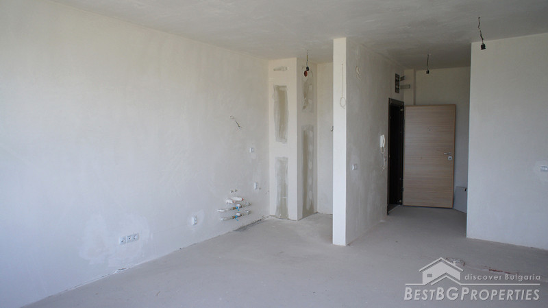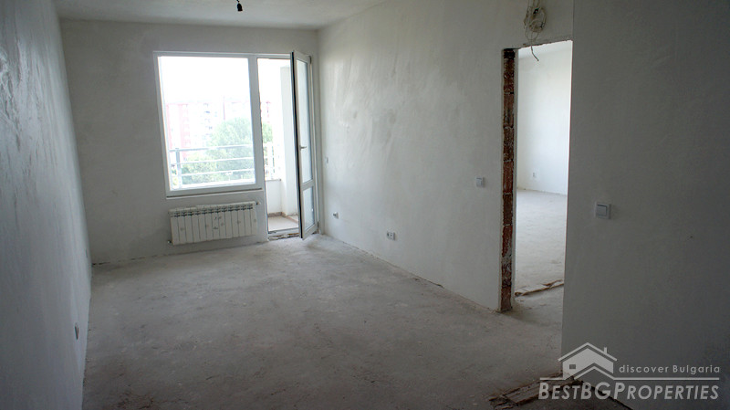 The apartment is on the third floor of the five floored building. It is one bedroom type of apartment comprising total living area of 86 sq m. The living area is distributed between a large bedroom, which is suitable to be rearranged into two separate rooms, a large living room with kitchen box, and bathroom with WC. The apartment is for sale on Bulgarian standard - on plastering and putty. Thus you will have the opportunity to finish the apartment according to you own taste and requirements.