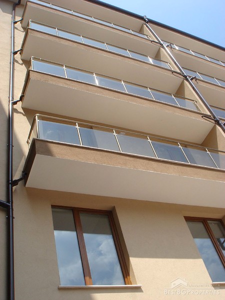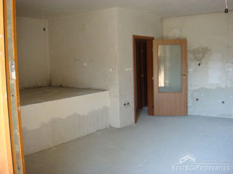 The apartment is situated on the fourth floor of a fully finished residential building with act 16 permition for usage. It is for sale "on key" stage with mounted luxury doors, full wiring (TV, internet, intercom, switches and sockets), mounted radiator. The building also has an elevator. The apartment is a studio type, having total living area of 57.93 sq m, and 48.25 sq m of clean area.