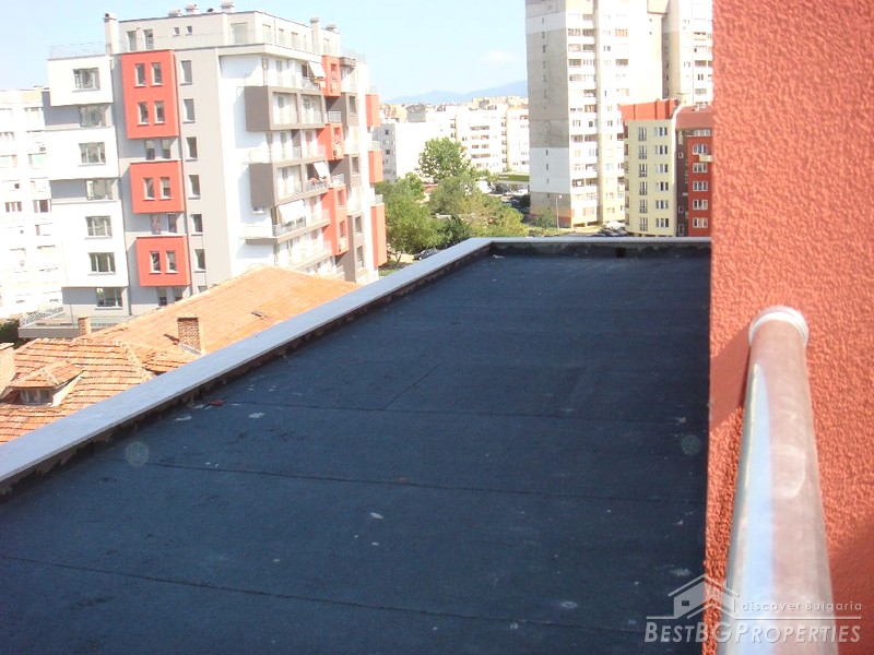 The apartment is situated in a newly built residential building with act 16, fully finished with luxurious common parts. It is a two bedroom type of apartment, comprising clean area of 134.01 sq, and total living area including the common parts - 161.67 sq m. It is situated on the last, sixth floor of the building and comprises amazing panoramic view over the Vitosha Mountain. In addition to the apartment there are around 70 sq m of balcony space which is free of charge. Thus the whole living area of the property becomes 230 sq m, which includes full finishing - on key.