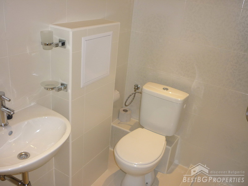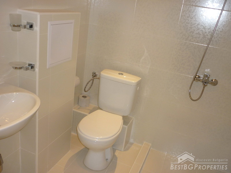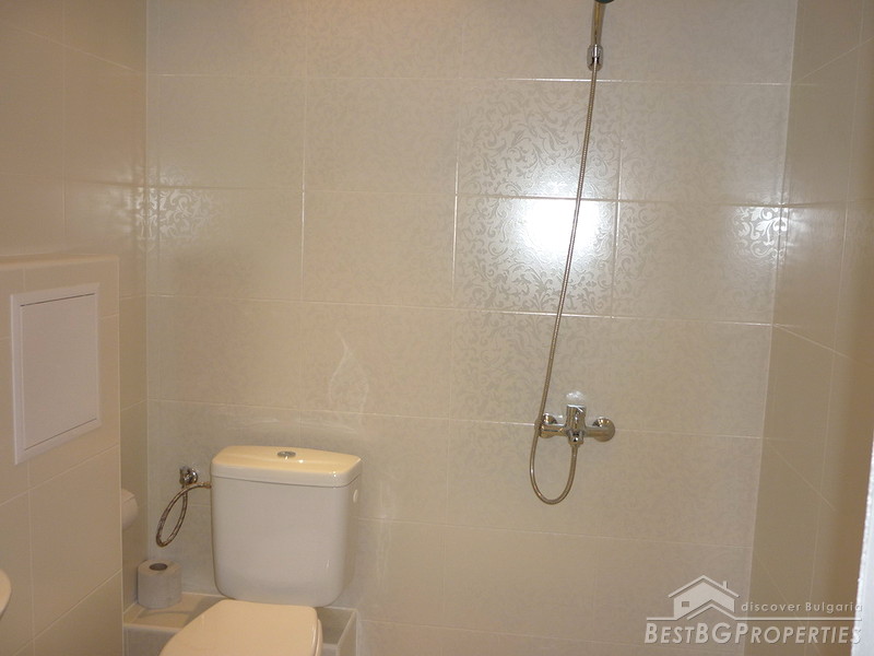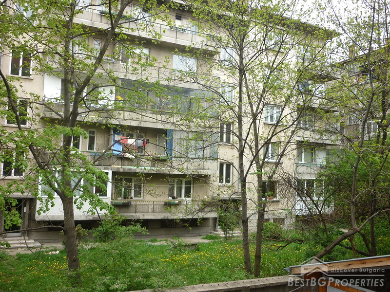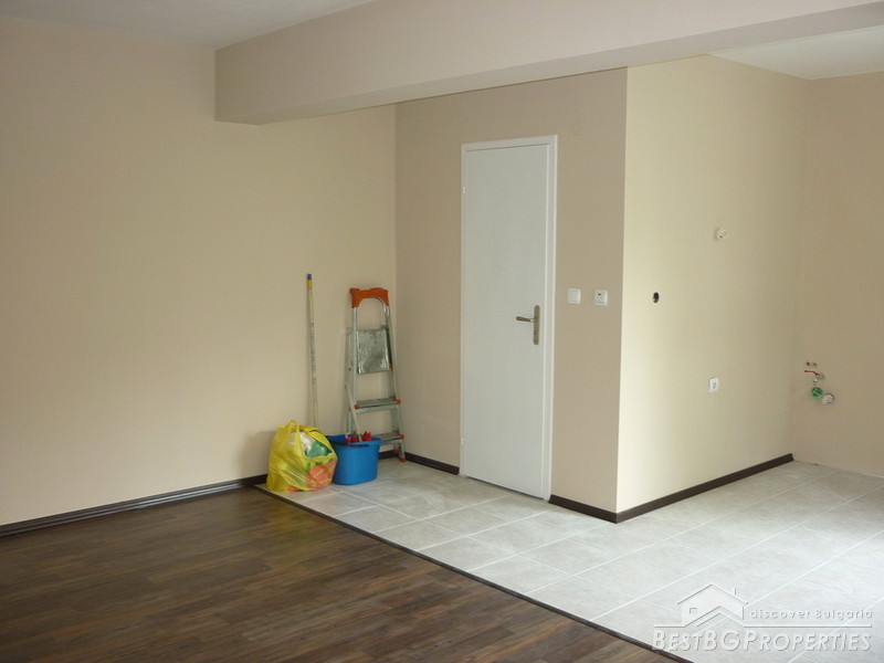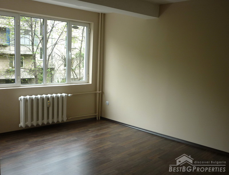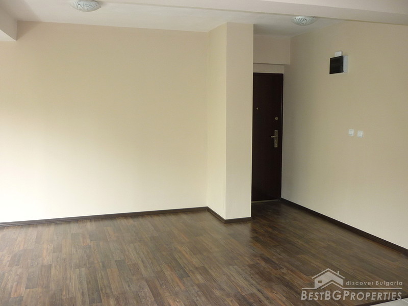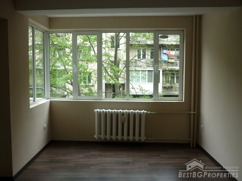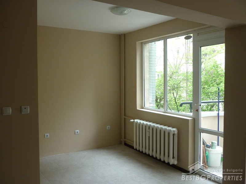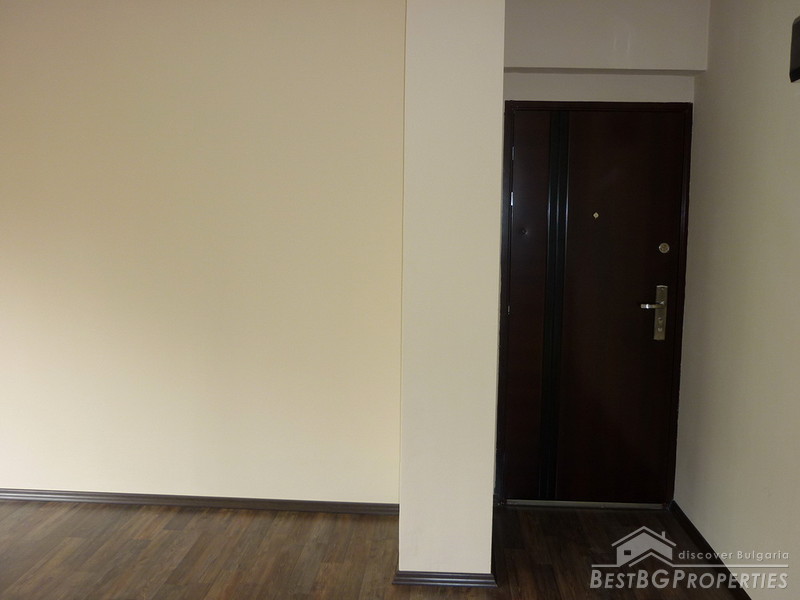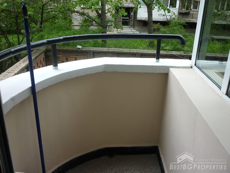 The apartment is a studio type, consisting of one room with kitchen box, balcony with nice view, and a bathroom with WC. The apartment is on the second floor above the ground floor. It is after a complete renovation with new water and electricity installations, new bathroom, and new floorings: laminated parquet and granite tiles. There is also a new front door. The apartment comprises total living area of 40 sq m and has eastern exposure.