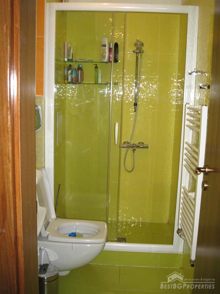 The apartment is a one bedroom type, consisting of a lounge, spacious living room with kitchen box, one bedroom, and bathroom with WC. The apartment is luxury finished to "on key" stage. It is equipped with high quality sanitary equipment, Italian faience and terracotta. There is also a balcony with nice view. The apartment has air conditioners Toshiba, boiler Ariston, armored front door, SOT security system, internet and many other extras. There is a possibility for selling it fully furnished at additional cost.