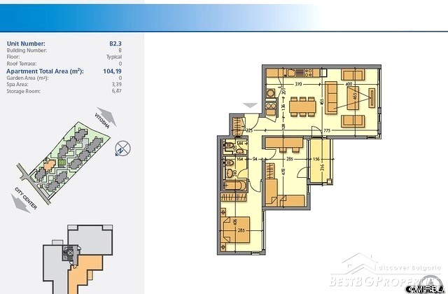 The complex is gated with modern design and original architecture. The buildings are four floored with three apartments on each floor and an underground parking. The facade finished with panels made of natural wood, panoramic French windows. The distributions of the apartments is functional and spaciousness!