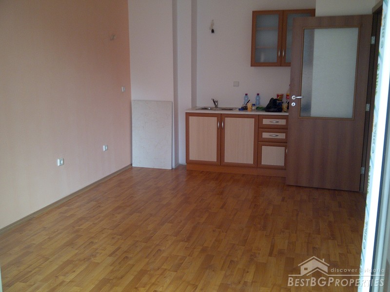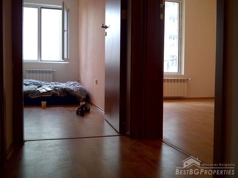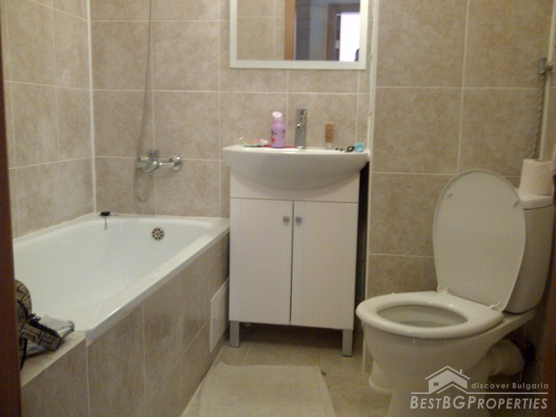 The apartment comes completely finished and partly furnished. It has fully equipped bathroom with sanitary, and bath tub, partly equipped kitchen box with sink and cup boards. The apartment has laminated flooring in the living room and bedroom, faience and terracotta in the bathroom. It has mounted radiators, PVC window joineries and balcony doors.