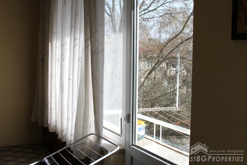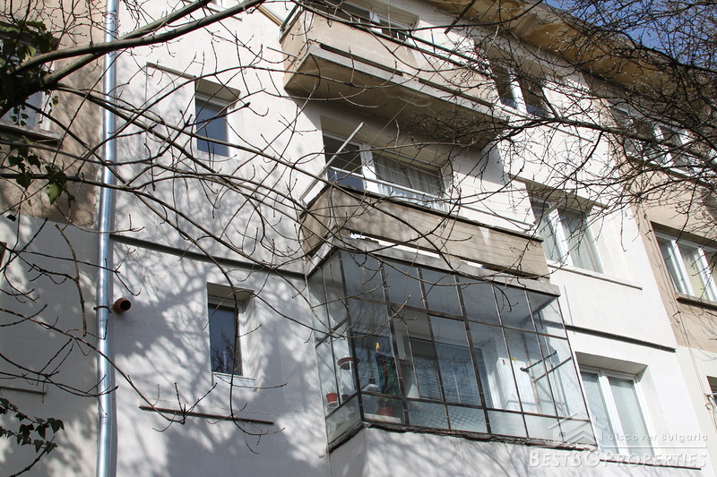 The apartment is situated on the third floor of an older residential building, constructed on the sixth tees. The building is brick built and it is not connected to the central heating. The entrance has replaced windows and door to PVC. It overlooks the inner yard between the residential buildings far from the street noise.
