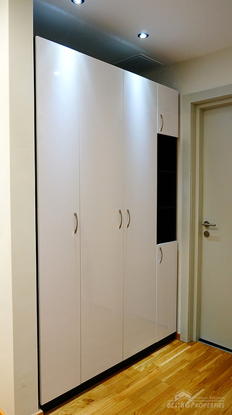 The apartment consists of an entrance hall with wardrobe, two bedrooms and a large living room with dining area and area for resting and watching TV, separate kitchen, bathroom, guest toilet, premise for the gas heater and wet premise for the washing machine and dryer.