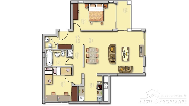 Offered for sale is a luxury two-bedroom apartment located in a residential complex in Sofia. The apartment is with an area of 117.52 sq m and also includes: 4 square meters basement and common areas of 8 sq m.