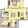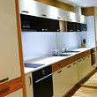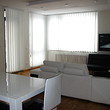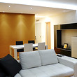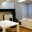 The master bedroom has huge French windows opening to the terrace and two tall windows on either side of the bed. The floors are parquet, washable wallpapers ESPRIT. The second bedroom is made in to a cabinet. The living room is about 60 square meters with south-eastern exposure and direct access to the hall, kitchen and balcony. It is separated into three zones: for watching TV, relaxing and dining area. The kitchen is separated from the living room, but not completely separated from the dining area, so that you can talk with guests even while cooking. The kitchen is equipped with fridge, oven, hob, extractor, deep sink with faucet and dishwasher. The bathroom is granite finished, all with fitted sinks and sanitary appliances.