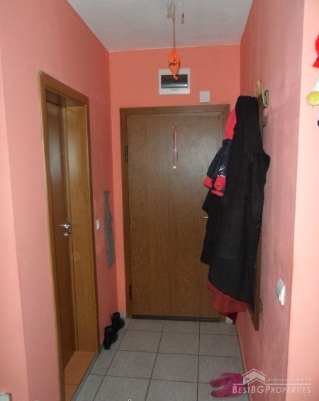 The property is offered semi-furnished – only bedroom and equipped bathroom. It is painted everywhere and has laminate and terracotta floors. The apartment is located 5 minutes from the stop of tram number 7 and 10 minutes from the final stop of bus 204, Billa, and Mall Bulgaria.