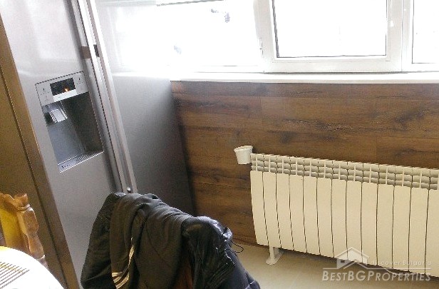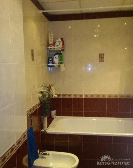 The apartment is after a complete and very expensive renovation. It is finished with Italian aluminum joinery of highest class, inside and outside isolation.There are German MDF interior doors, luxury bathroom with bidet. The floor covers are of polished granite tiles and oak wood.