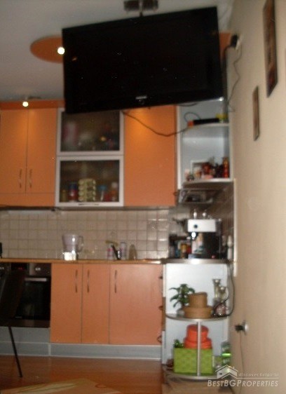 The apartment is one bedroom type and has total living area of 40 sq m. It is located on the first residential floor, second from the ground. It is part of a brick residential building. The apartment has outside isolation, PVC windows, suspended ceilings, after a complete renovation.